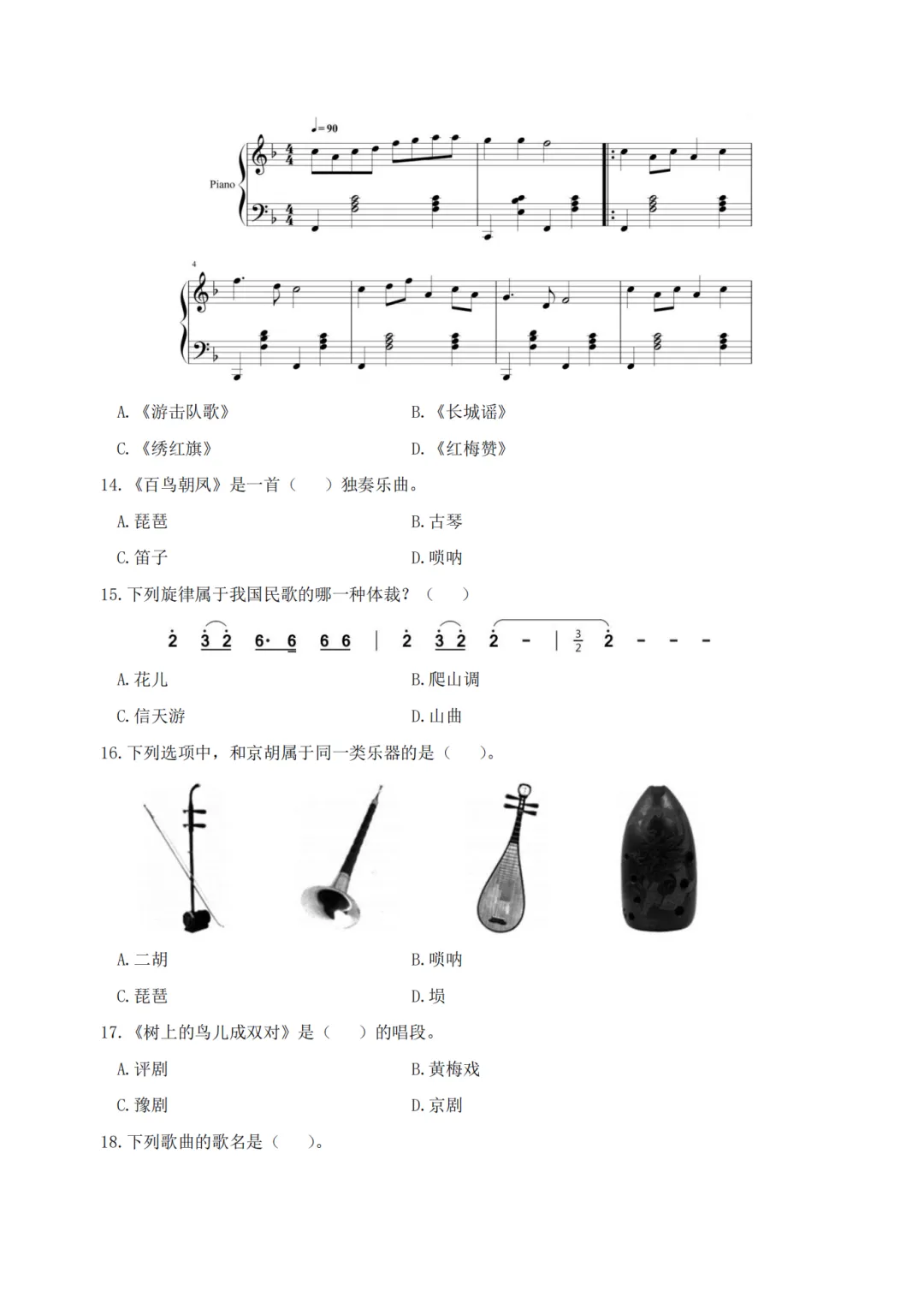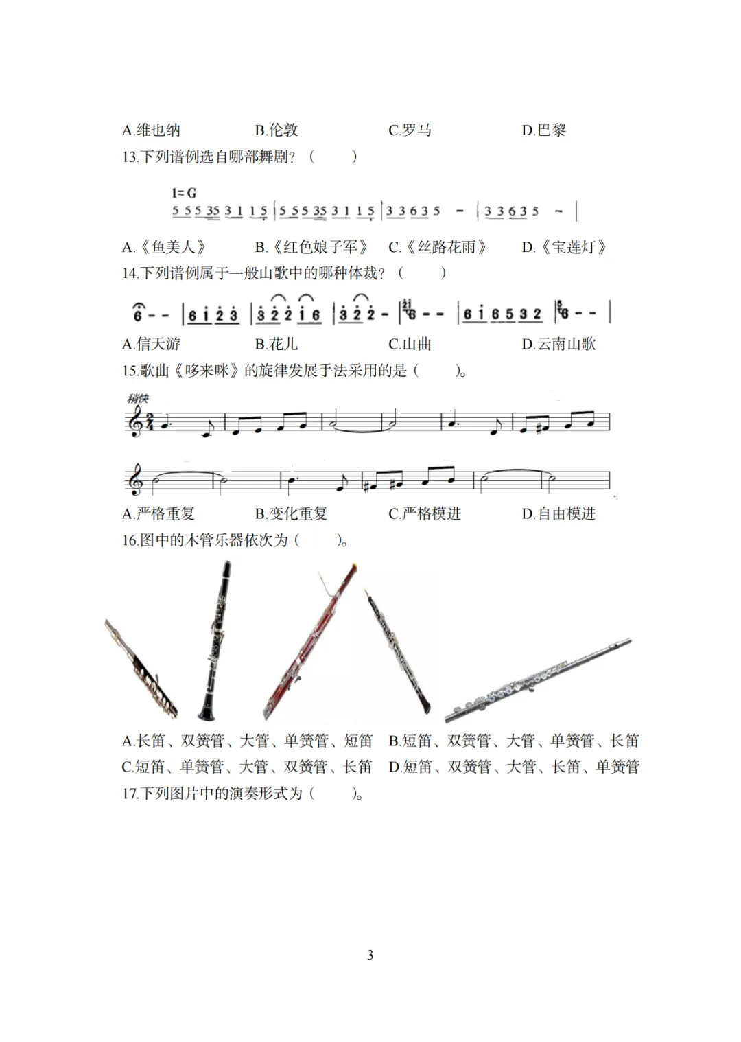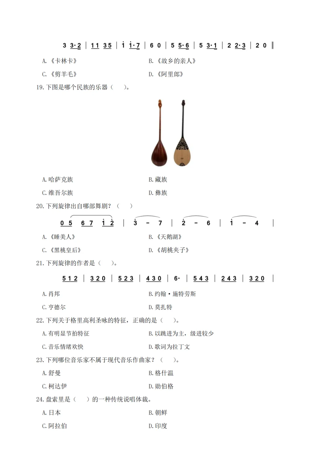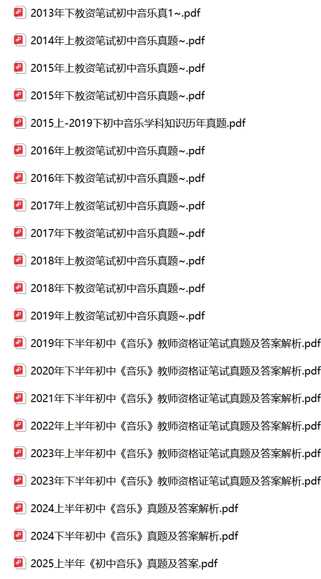 >26上教资笔试初中音乐科三历年真题更新至25年含答案可打印