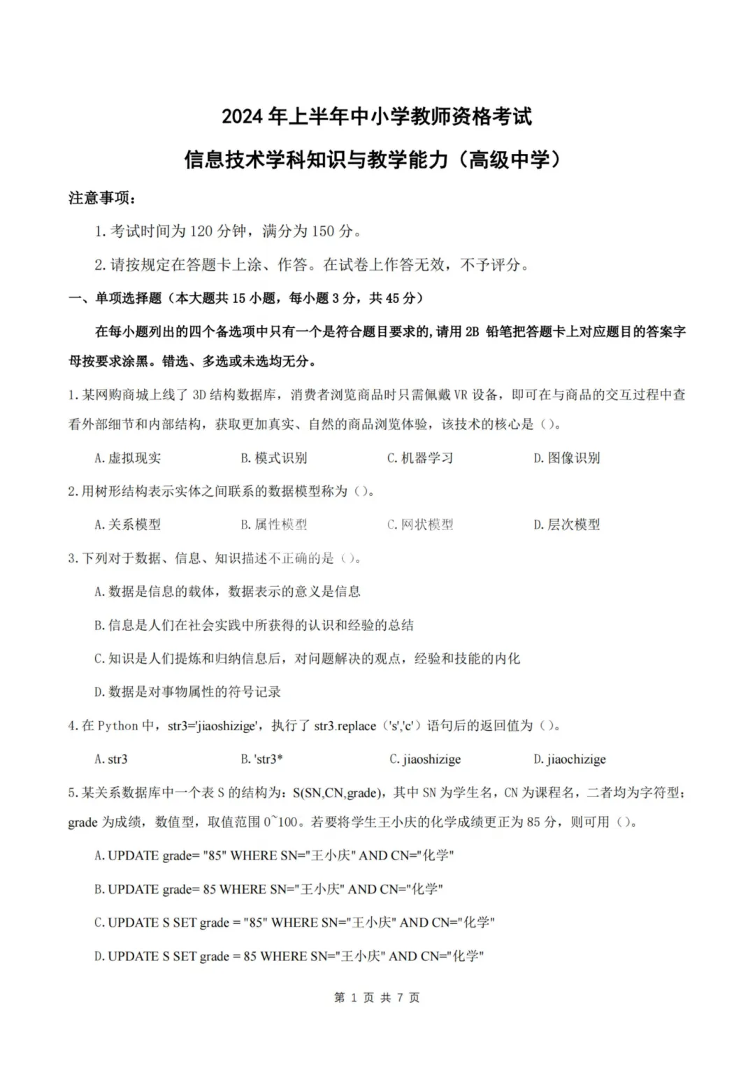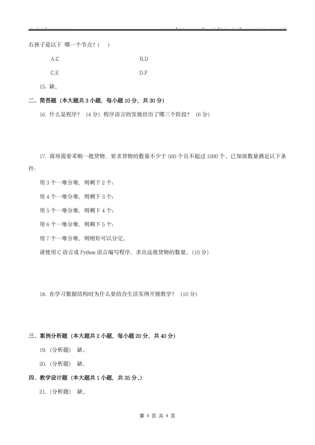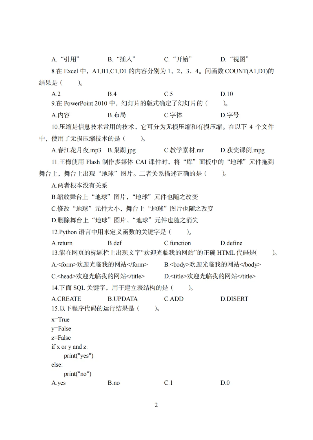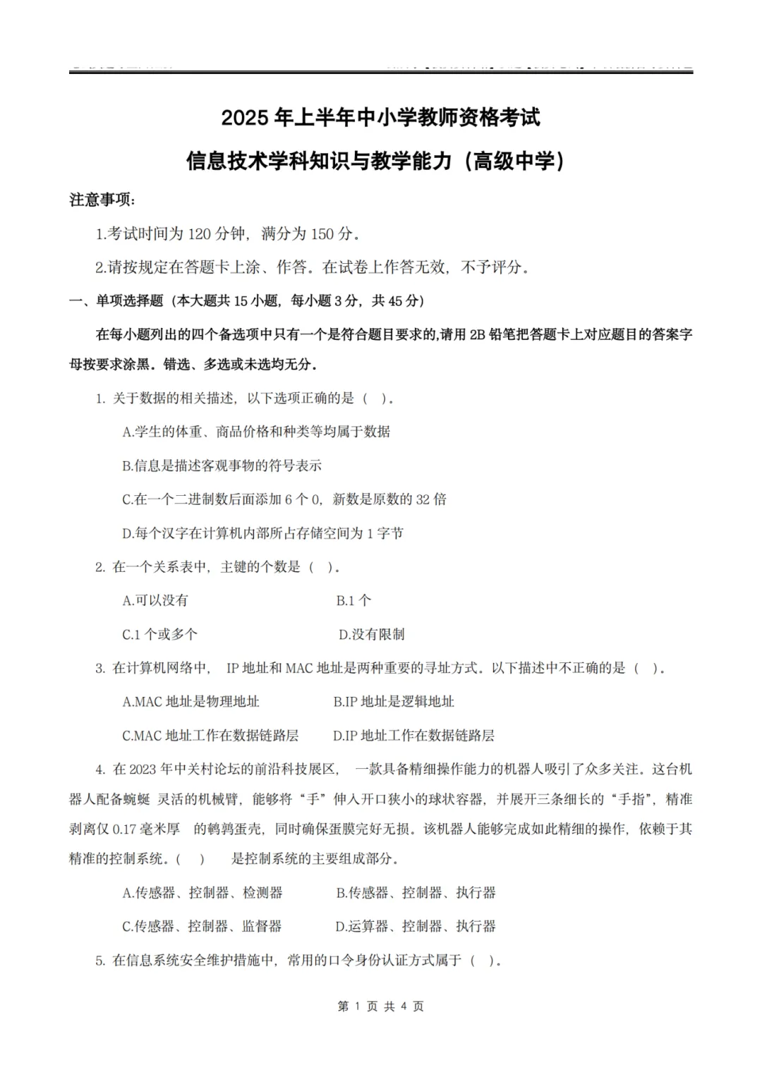 26上教资笔试初中信息技术三历年真题更新至25年含答案可打印
