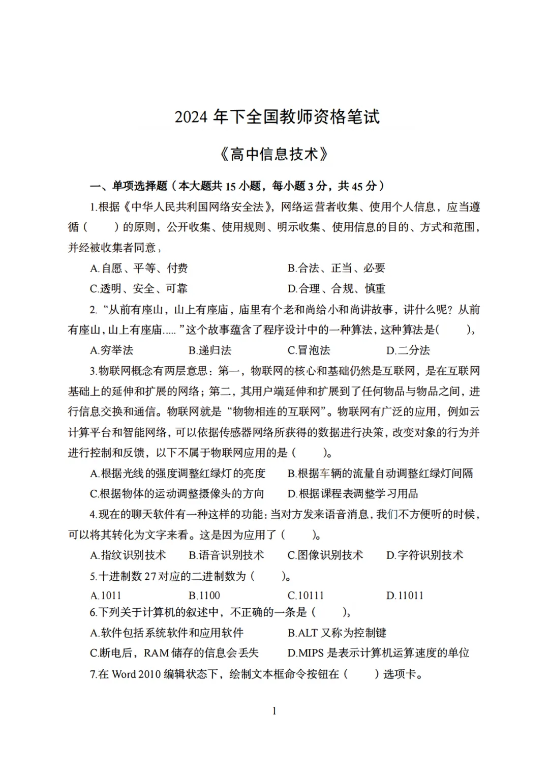 26年3月教资笔试科目三初中信息技术历年真题汇总含答案可打印