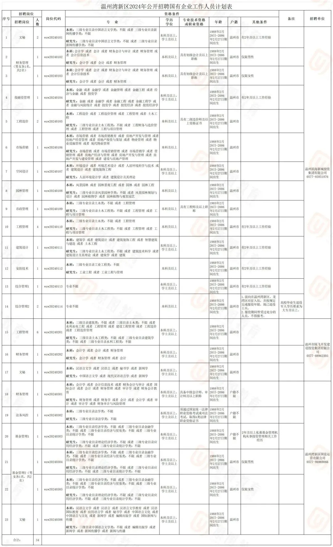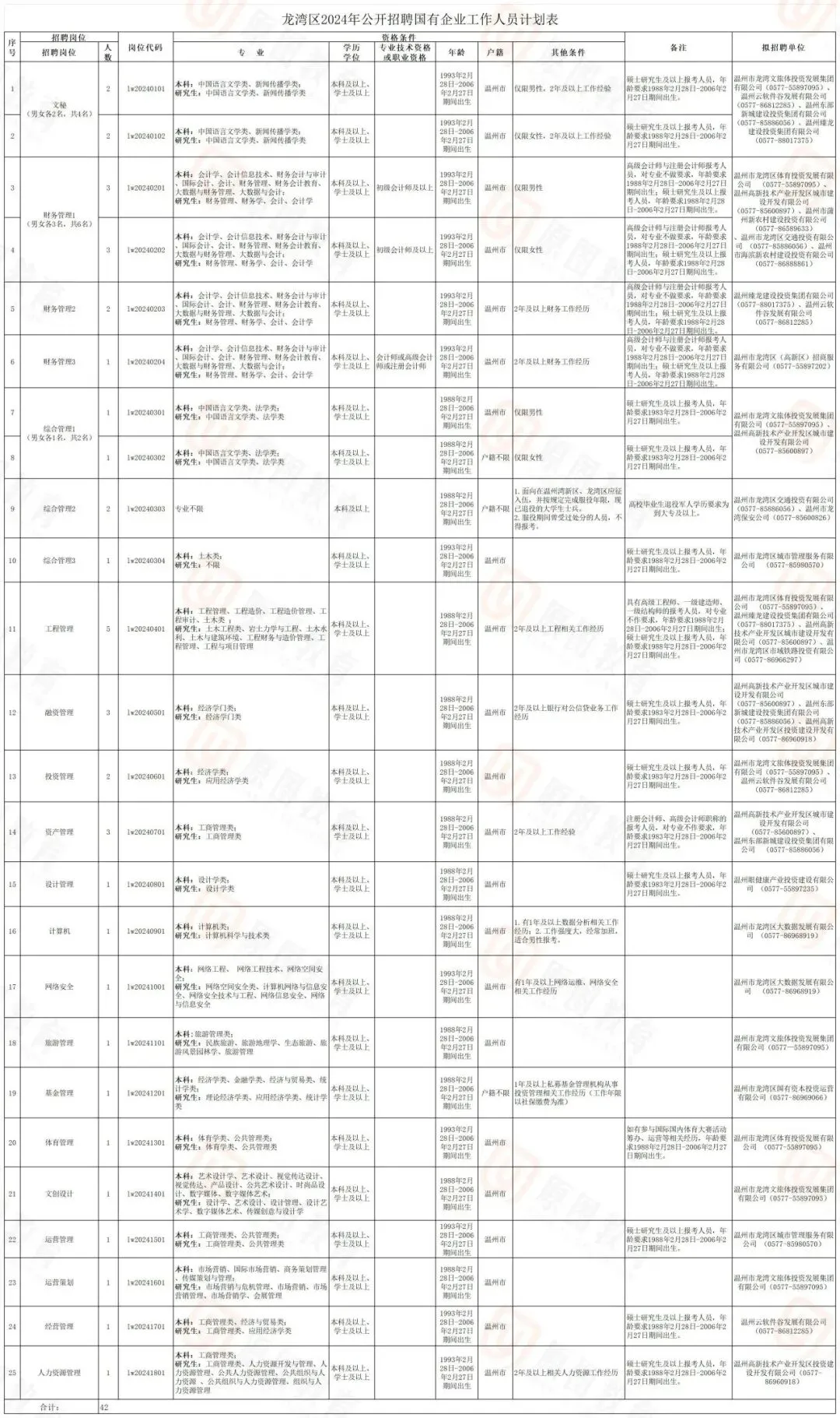 龙湾区区属国企报名时间:2月28日-3月1日