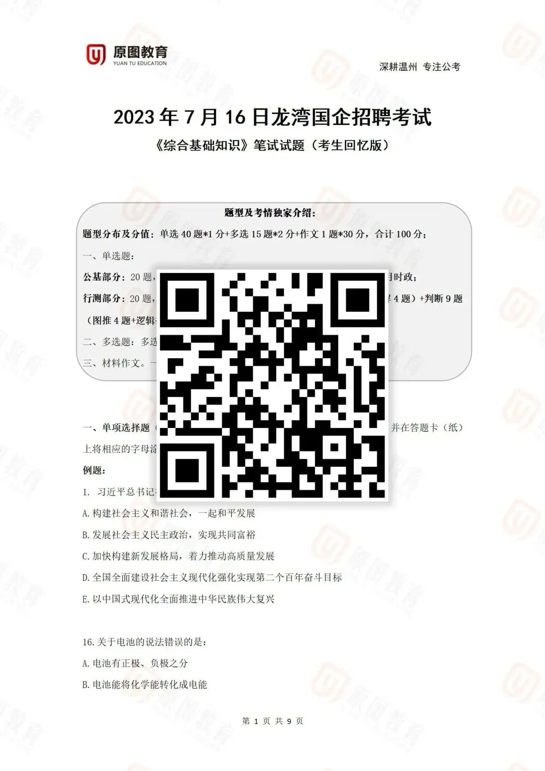 23湾新区、龙湾区国企真题