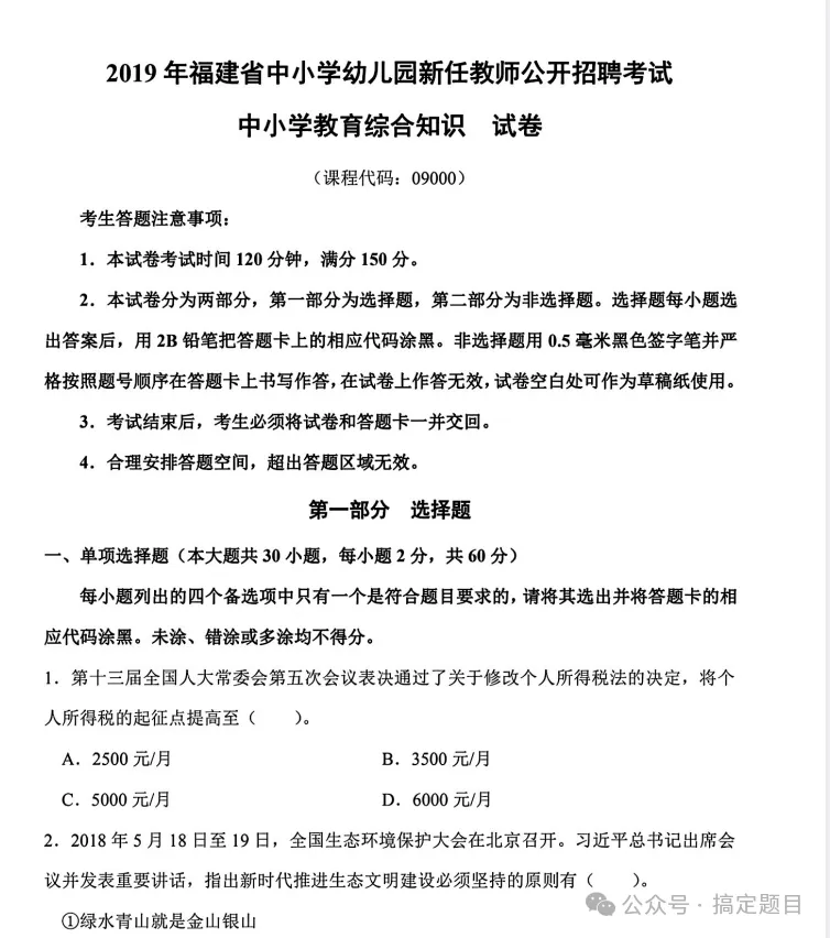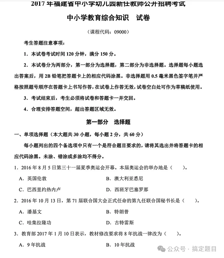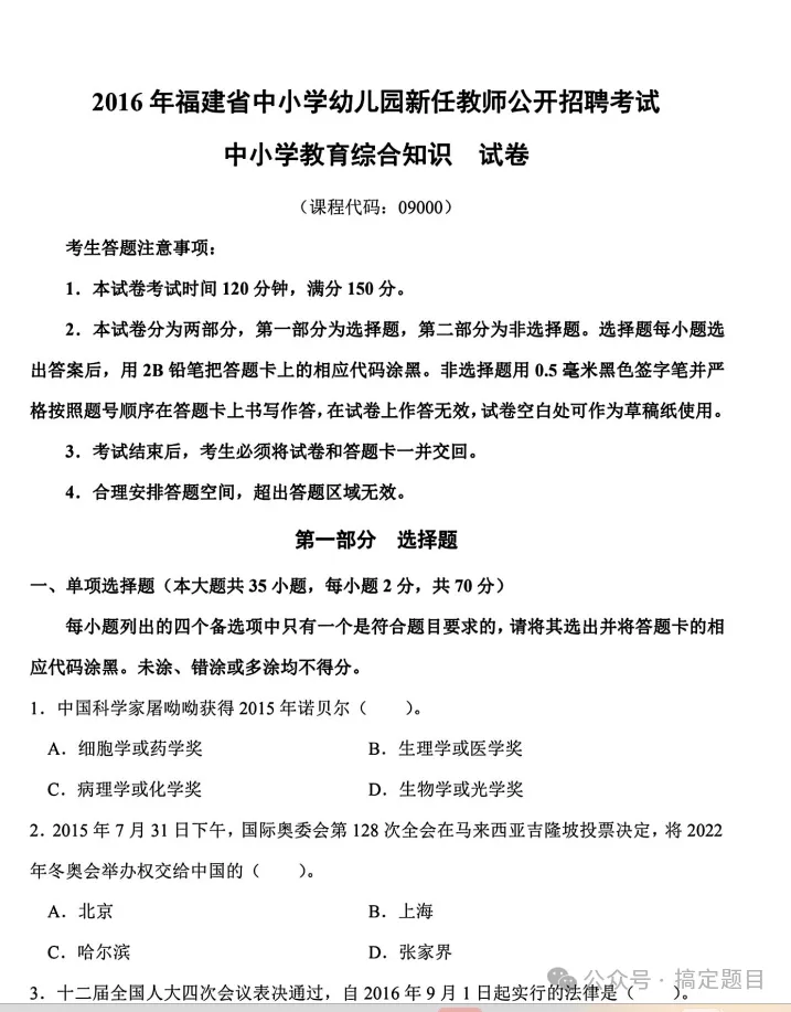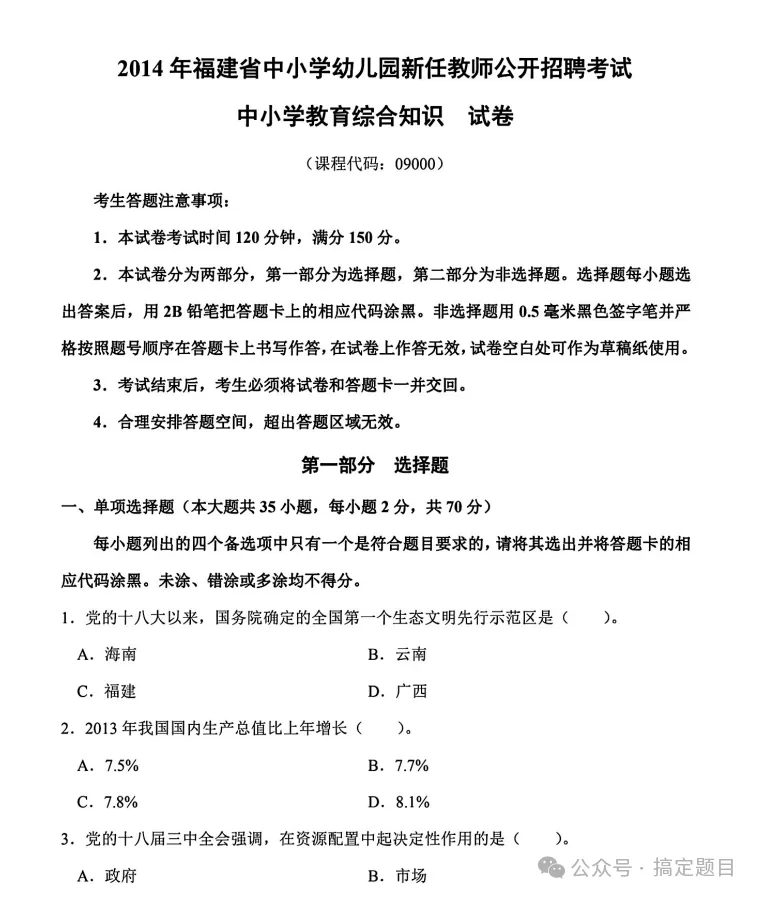 福建教师招聘历年教综真题(14-24)25年真题可通过刷题软件获得