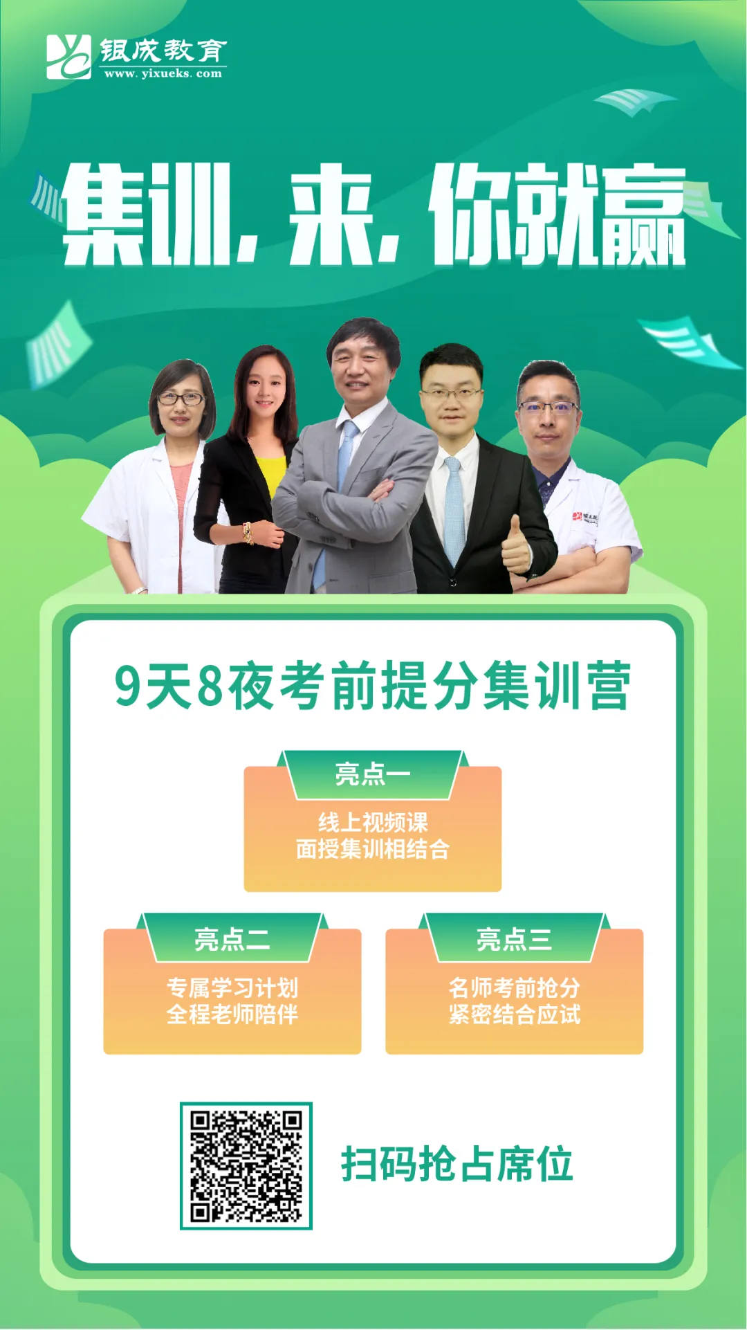 医学综合考试全部采用选择题形式。各类选择题均由题干和选项两部分组成。题干是试题的主体,可由一段短语、问句或不完全的陈述句组成,也可由一段病例、图表、照片或其它临床资料来表示;选项由可供选择的词组或短句组成,也称备选答案。医师资格考试采用 A 型和 B 型题,临床、口腔、公卫、乡村全科共有 A 1 、A 2 、A 3 、A 4 、B 1 五种题型。中医、中西医结合医师共有 A 1 、A 2 、A 3 、B 1 四种题型。医师资格考试总题量为 600题,助理医师资格考试总题量为 300 题。答题说明:每一道试题下面有 A 、B 、C 、D 、E 五个备选答案,请从中选择一个最佳答案。A.主要有 mRNA,t RNA,r RNA 等种类答题说明:以下提供若干组试题,每组试题共用在试题前列出的 A 、B 、C 、D 、E 五个备选答案,请从中选择一个与问题关系最密切的答案。某个备选答案可能被选择一次、多次或不被选择。答题说明:每一道试题是以一个小案例出现的,其下面都有 A 、B 、C 、D 、E 五个备选答案,请从中选择一个最佳答案。20.女,35 岁。颈前疼痛伴低热 5 天。3 周前感冒伴咽痛,2 周前已痊愈。查体:37.8℃,皮肤无汗,甲状腺Ⅱ度肿大,右叶硬,明显触痛、拒按,血WBC 7.8×10 9 /L。最可能的临床诊断是21.女,30 岁。妊娠 8 个月余。近 1 个月来发现右腹股沟部拇指大小肿块,无痛,平卧时明显缩小。查体:右腹股沟管浅环不扩大,压迫深环肿块仍突出。最可能的诊断是答题说明:以下提供若干个案例,每个案例下设若干道试题。请根据案例所提供的信息,在每一道试题下面的 A A 、B B 、C C 、D D 、E E 五个备选答案中选择一个最佳答案。女,25 岁。已婚。停经 75 日,阴道中等量流血 4 日伴发热。昨日阴道排出一块肉样组织,今晨突然大量阴道流血。查体:T 38.2℃,P 116 次/分,BP 80/60mmHg。子宫如近妊娠 2 个月大,有压痛,宫口可通过一指,阴道分泌物明显臭味。血 WBC20.5×10 9 /L,Hb 68g/L。答题说明:以下提供若干个案例,每个案例下设若干道试题。请根据案例所提供的信息,在每一道试题下面的 A 、B 、C 、D 、E 五个备选答案中选择一个最佳答案。有的试题中提供了与病例相关的辅助或假定信息,要根据该题提供的信息来回答问题,这些信息不一定与病例中的具体病人有关。看完题型示例,心里是不是更有底了,银成万人模考将于7月10日开启,全针模拟考试系统,带你提前感知考场。回复:“模考”,即刻免费预约。