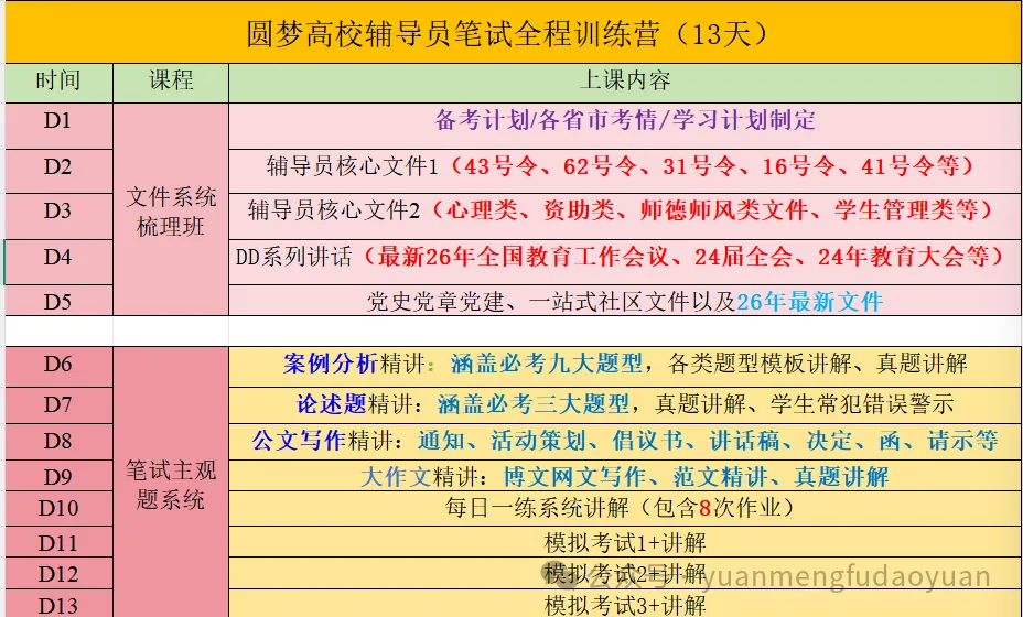党史,党章基本知识,团基本知识,文件类很细的考点(学生管理细则等),教育学,普通心理学,校园贷等现实问题的