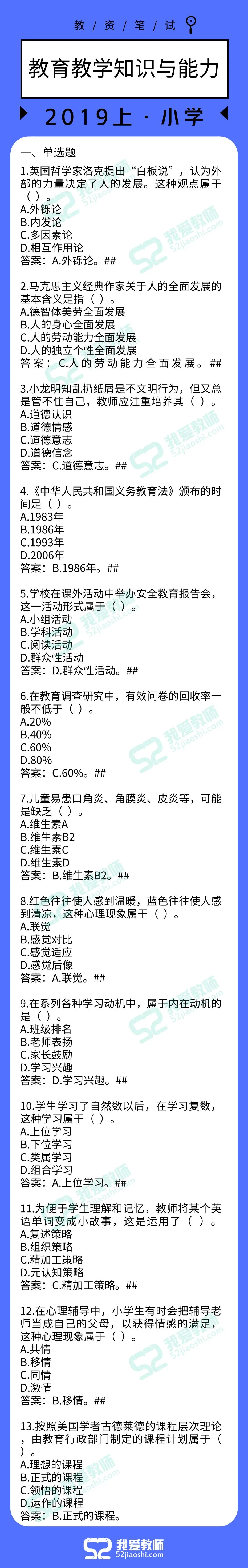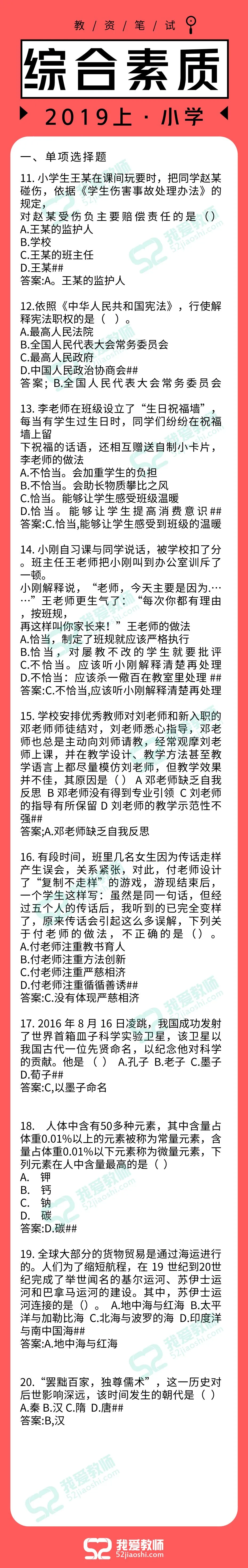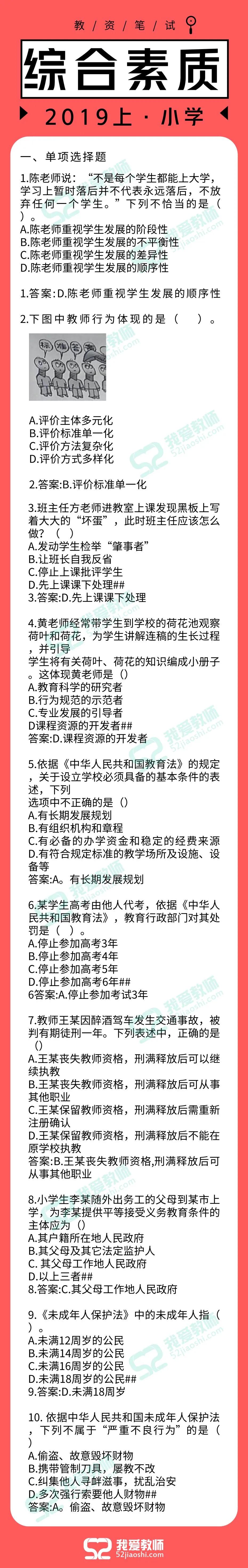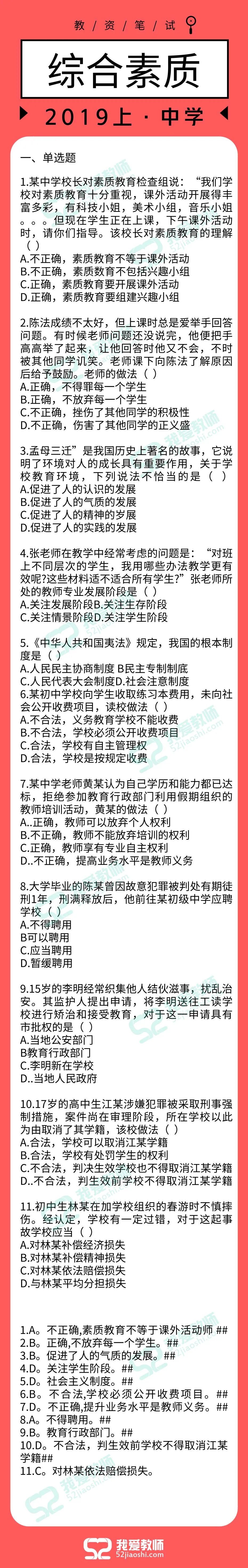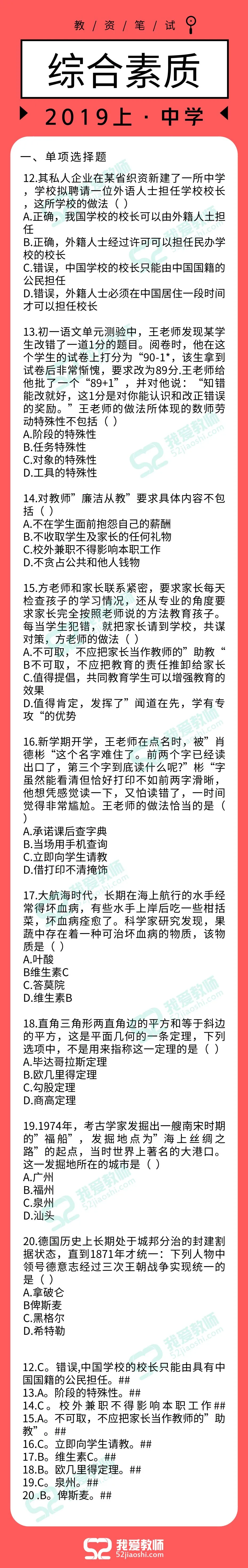 2019上半年教师资格笔试答案已出!