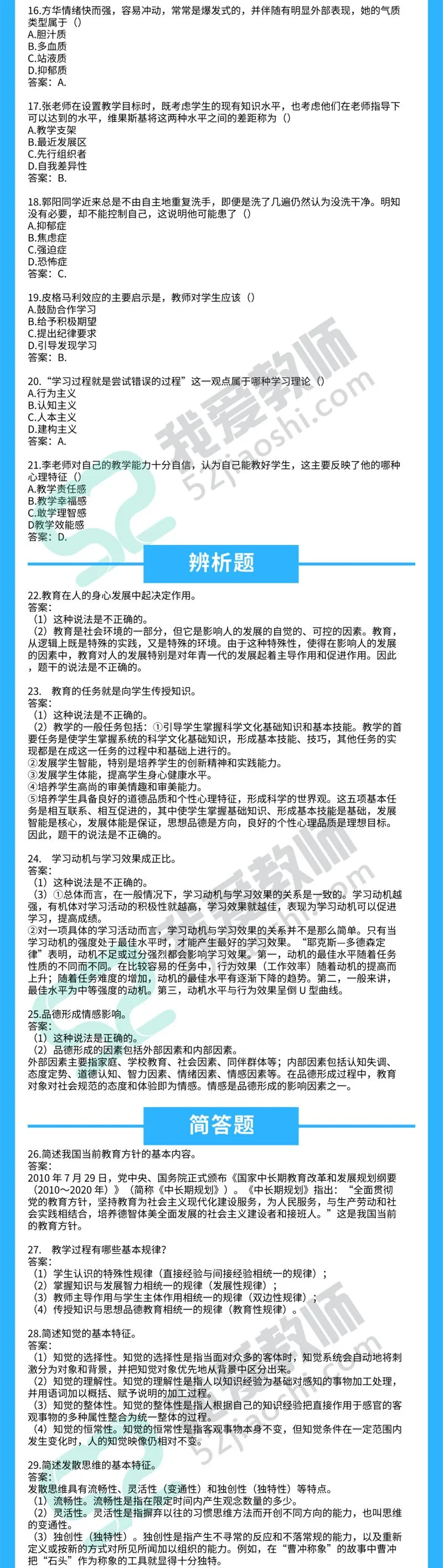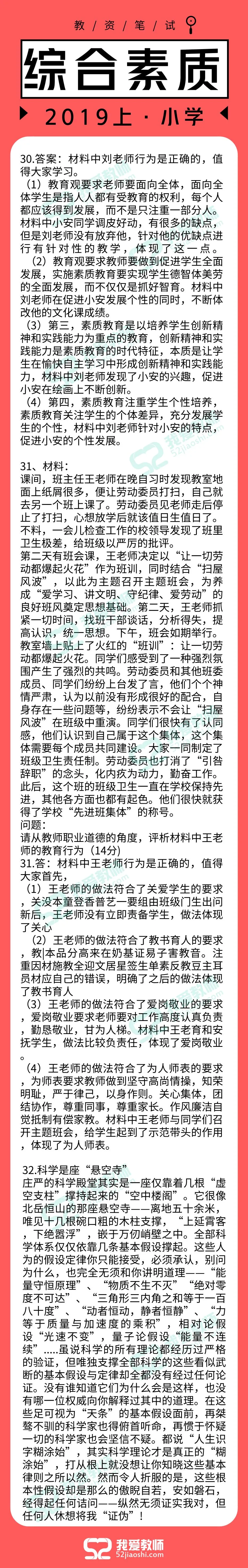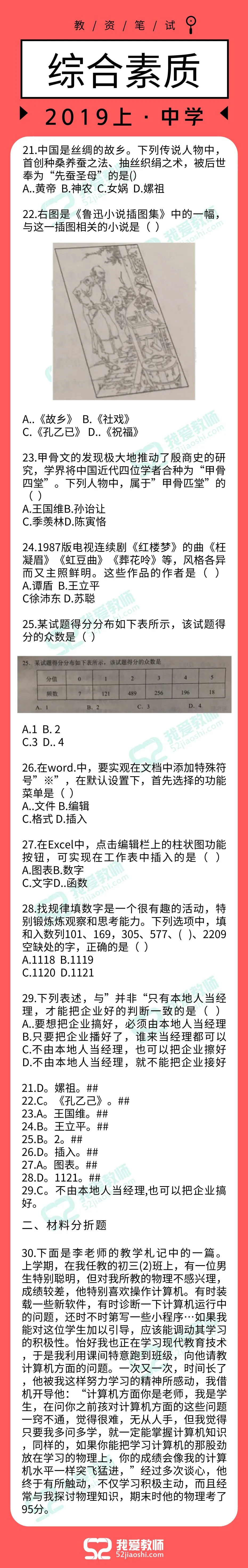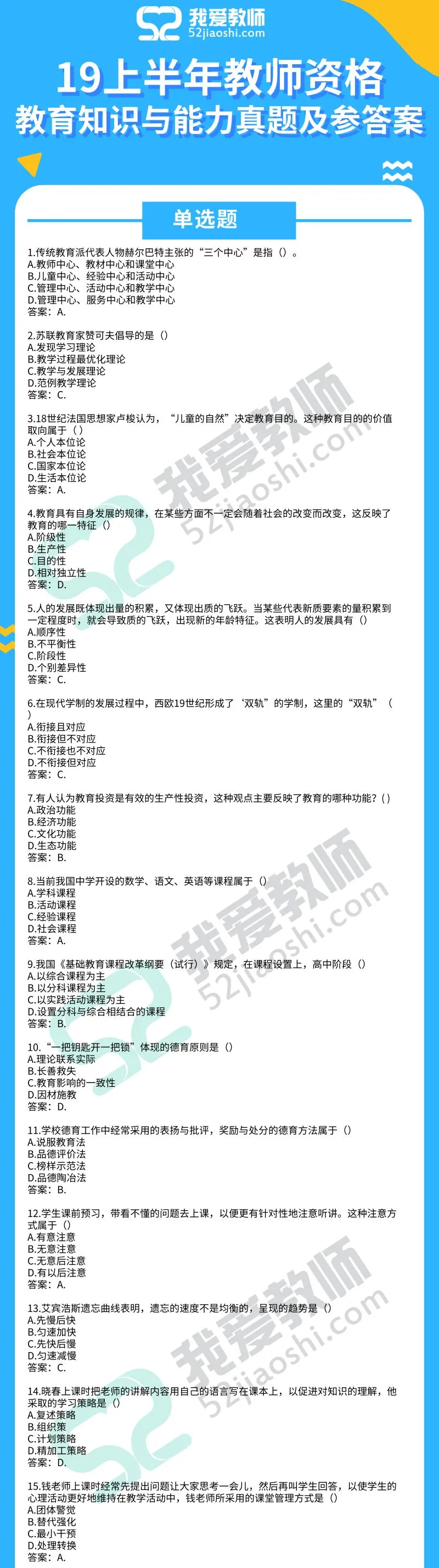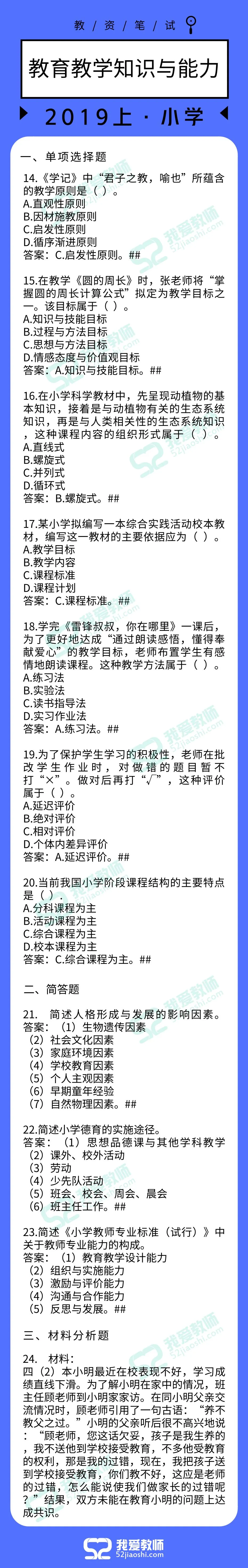 2019上半年教师资格笔试答案已出!
