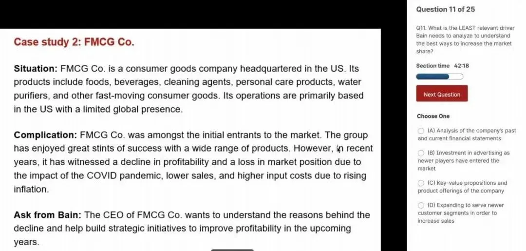 (多年不搞咨询的本瘦狗看见这个题目已经完全不知道该咋做了,不过大噶倒是在做题的同时可以再关注一下出的这些题目都是关注什么方面的,毕竟这算是红司对于该如何做一个case给出的一个相对官方的分析流程,所以也可以好好研究一下,应该能get到不少insight)