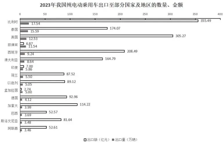79.2023年,我国纯电动乘用车出口数量前5位国家和地区出口额之和在以下哪个范围内?( )