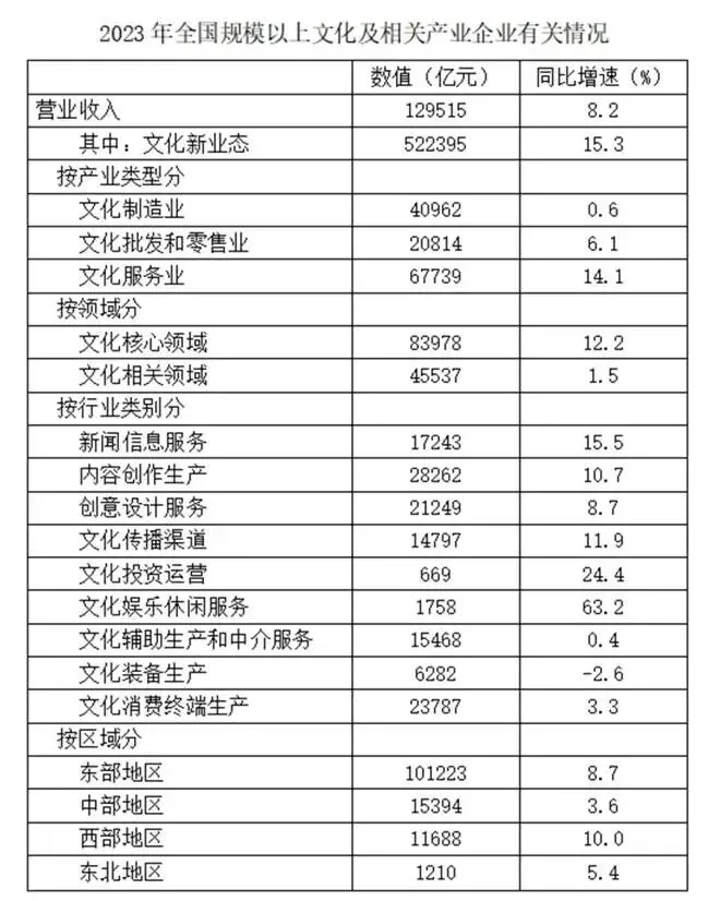 82.2023年,东部地区规模以上文化及相关产业企业营业收入同比增量是西部地区的( )。