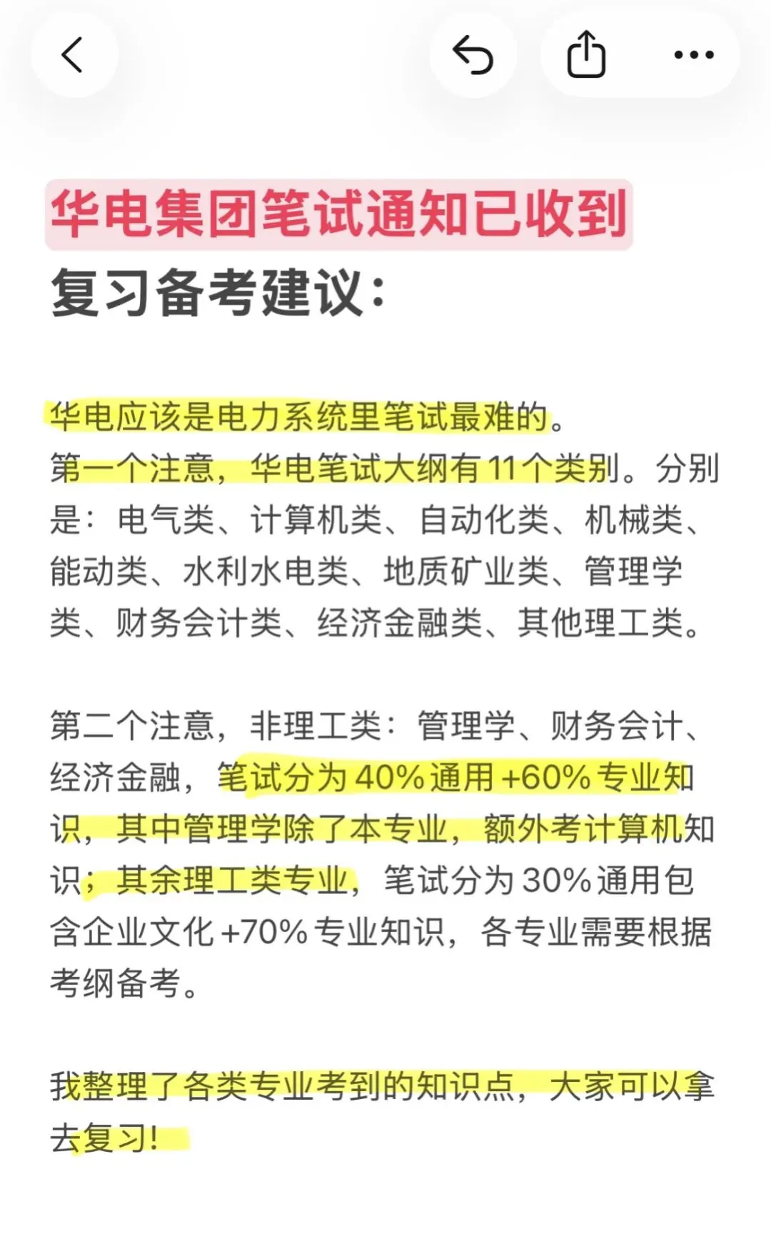 第一个注意,华电笔试大纲有11个类别。分别是:电气类、计算机类、自动化类、机械类、能动类、水利水电类、地质矿业类、管理学类、财务会计类、经济金融类、其他理工类。