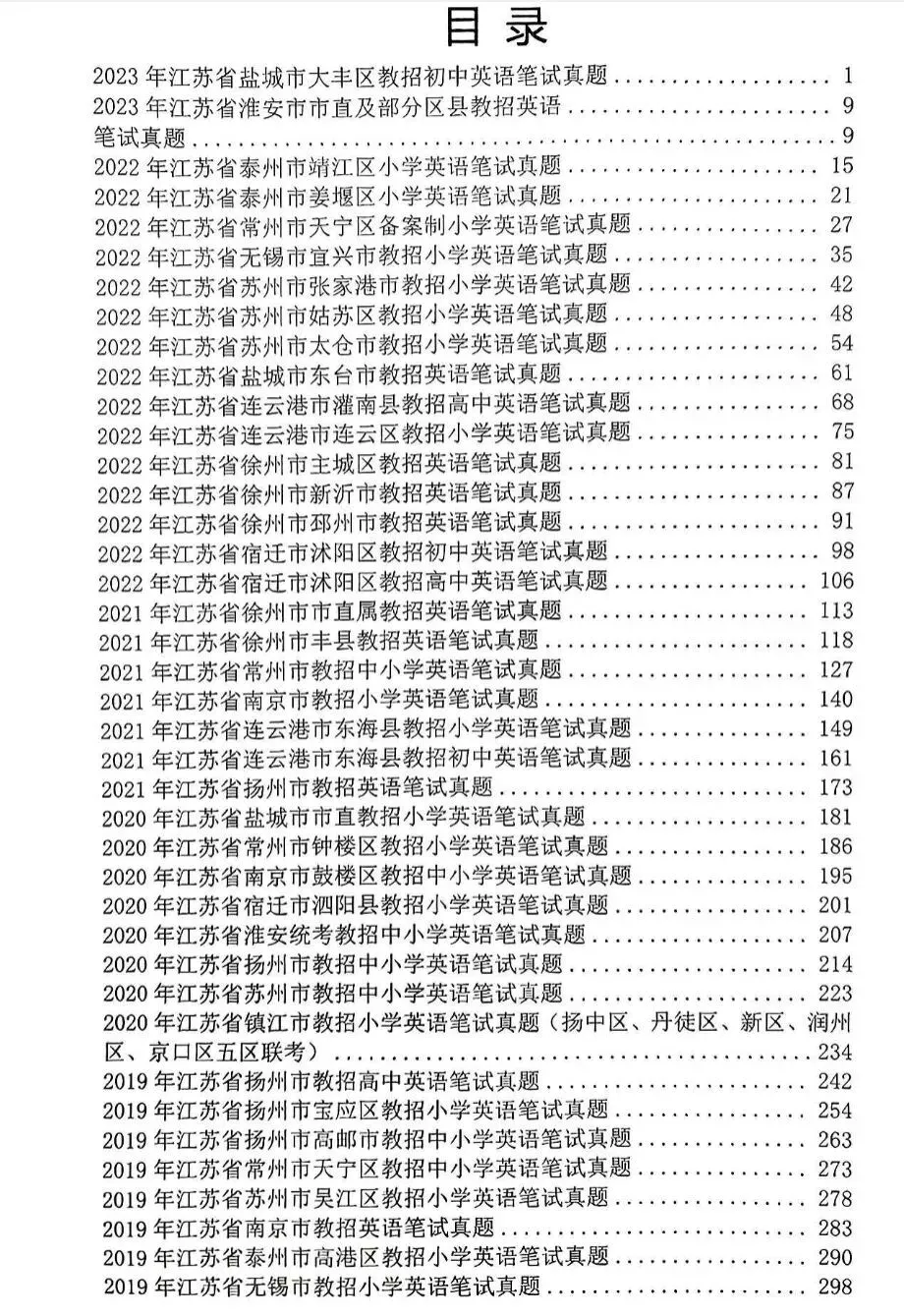 江苏省教师招聘英语学科真题及解析,包含:盐城、淮安、泰州、无锡、苏州、连云港、徐州、宿迁、南京、扬州、镇江、淮安、南通、常州 英语学科真题及解析