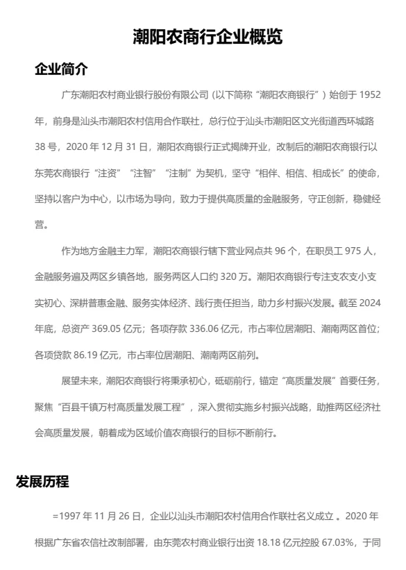 行情行史:潮阳农商行发展历程、核心业务、企业文化