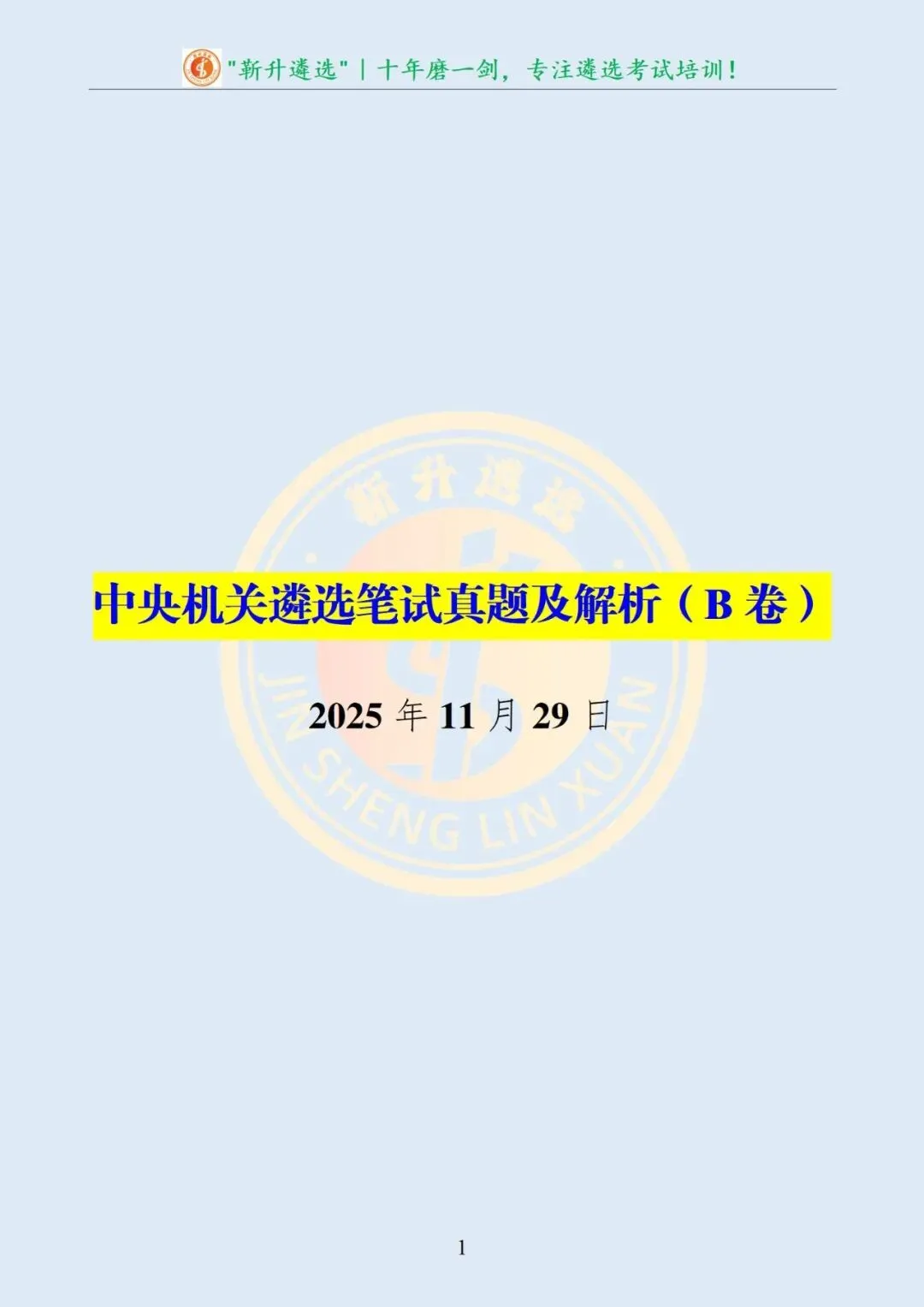 >真题分享|2025年11月29日|中央机关遴选笔试真题及解析(B卷)