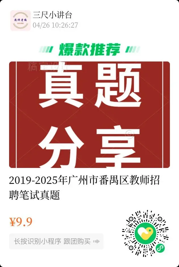 >2019-2025年广州市番禺区教师招聘笔试历年真题(电子版)