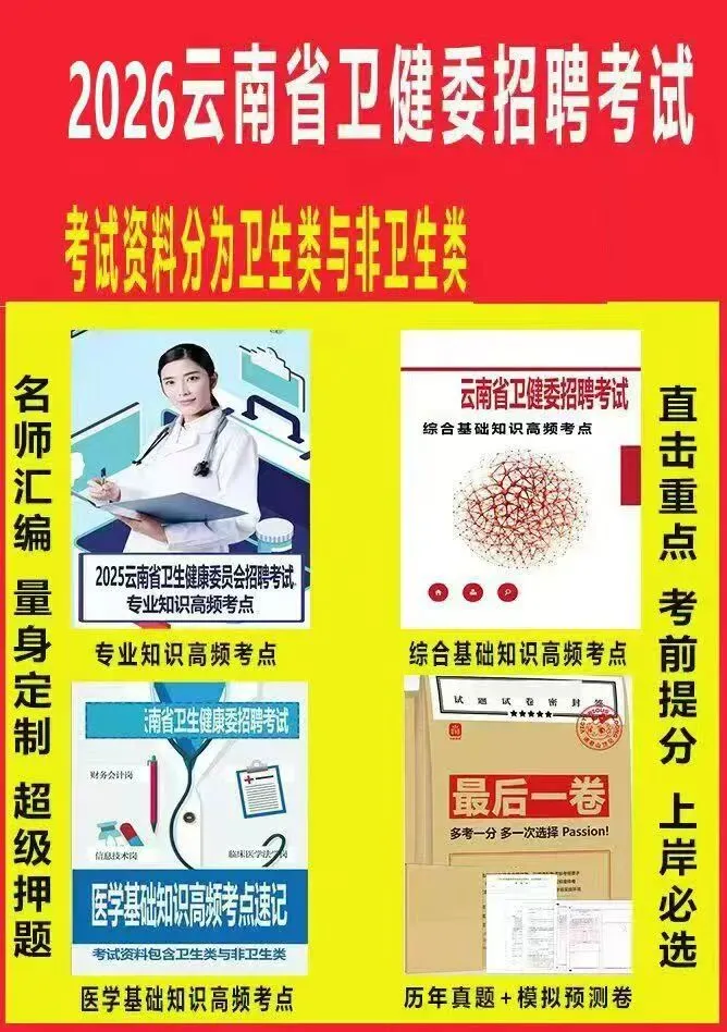>云南26卫健委招聘事业单位考试真题及预测卷来啦!