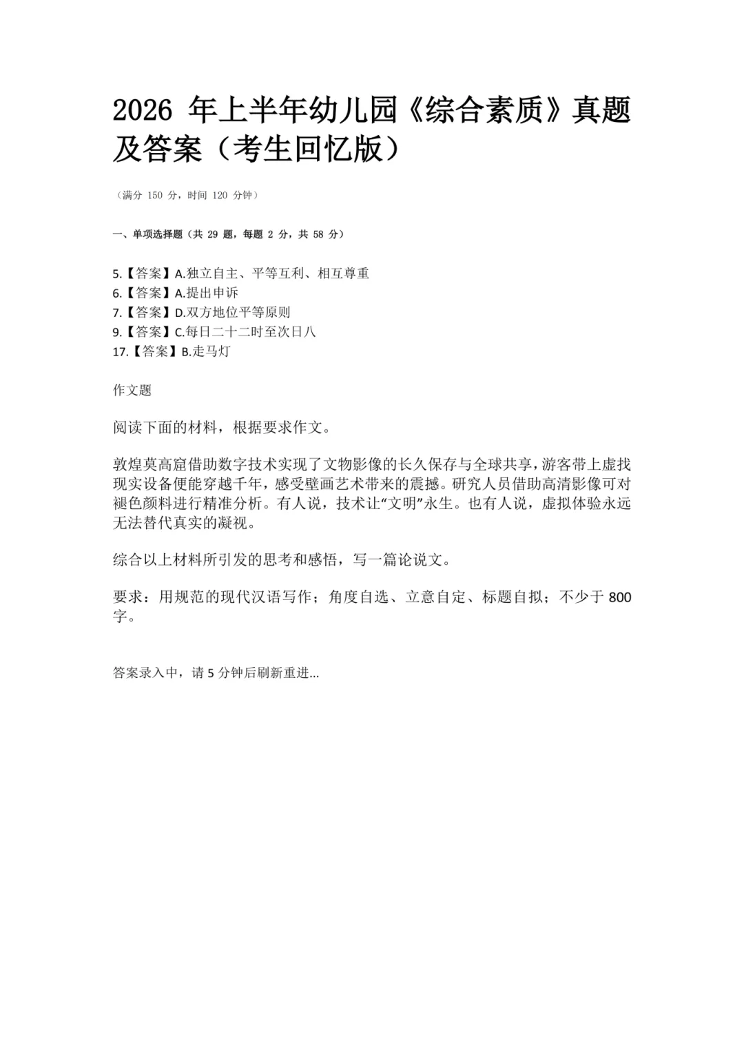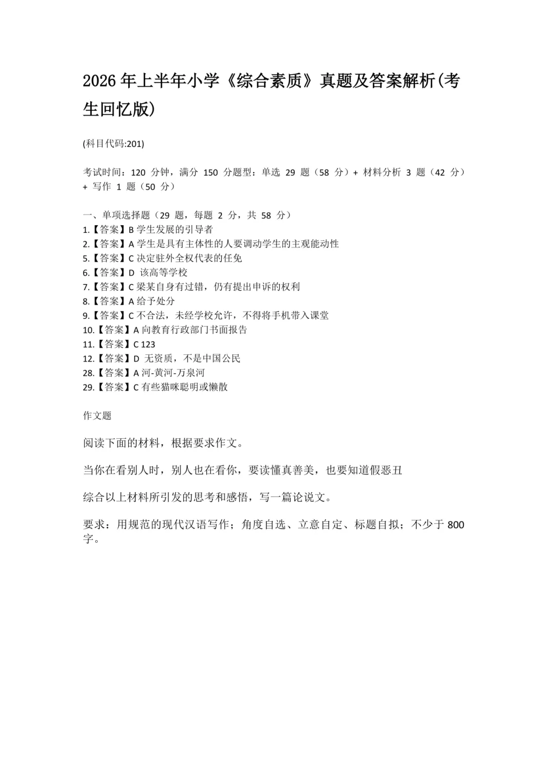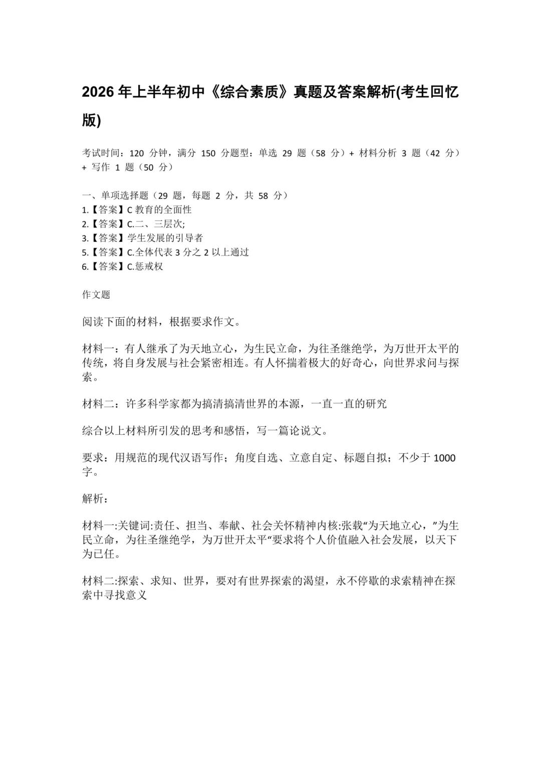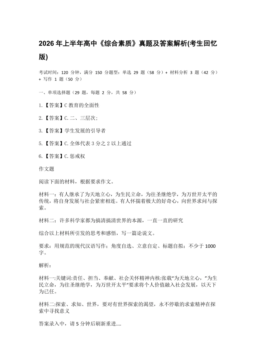 26上教资真题和答案(回忆版)持续更新中~