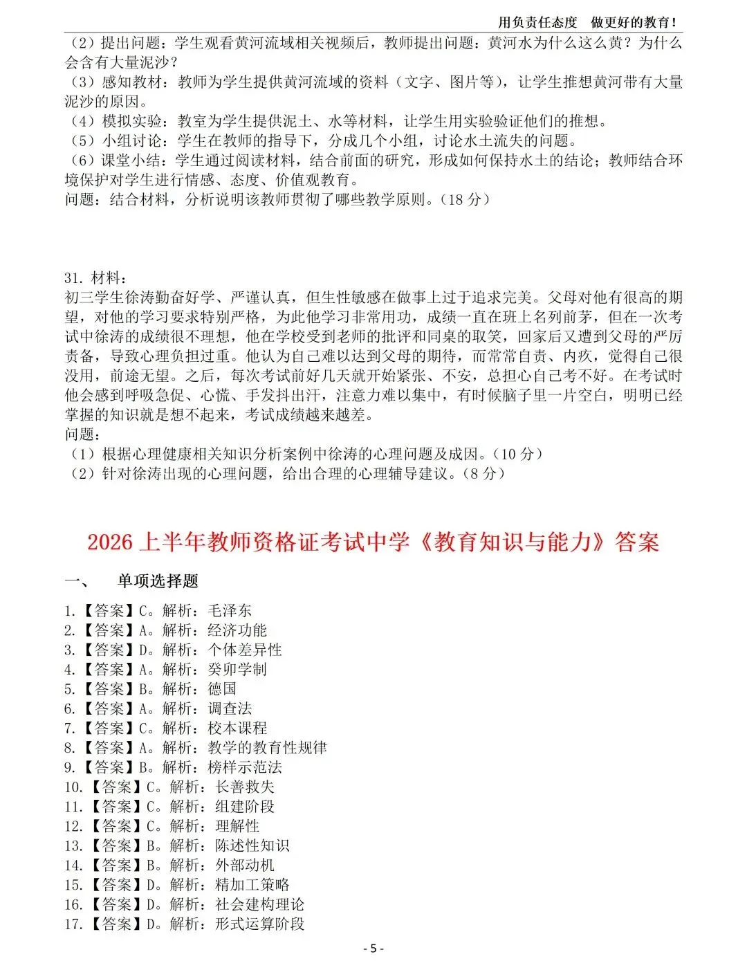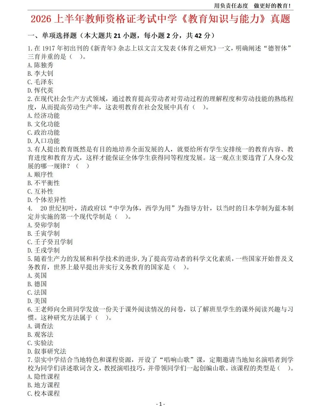 26年上中学《综合素质》真题+答案.docx