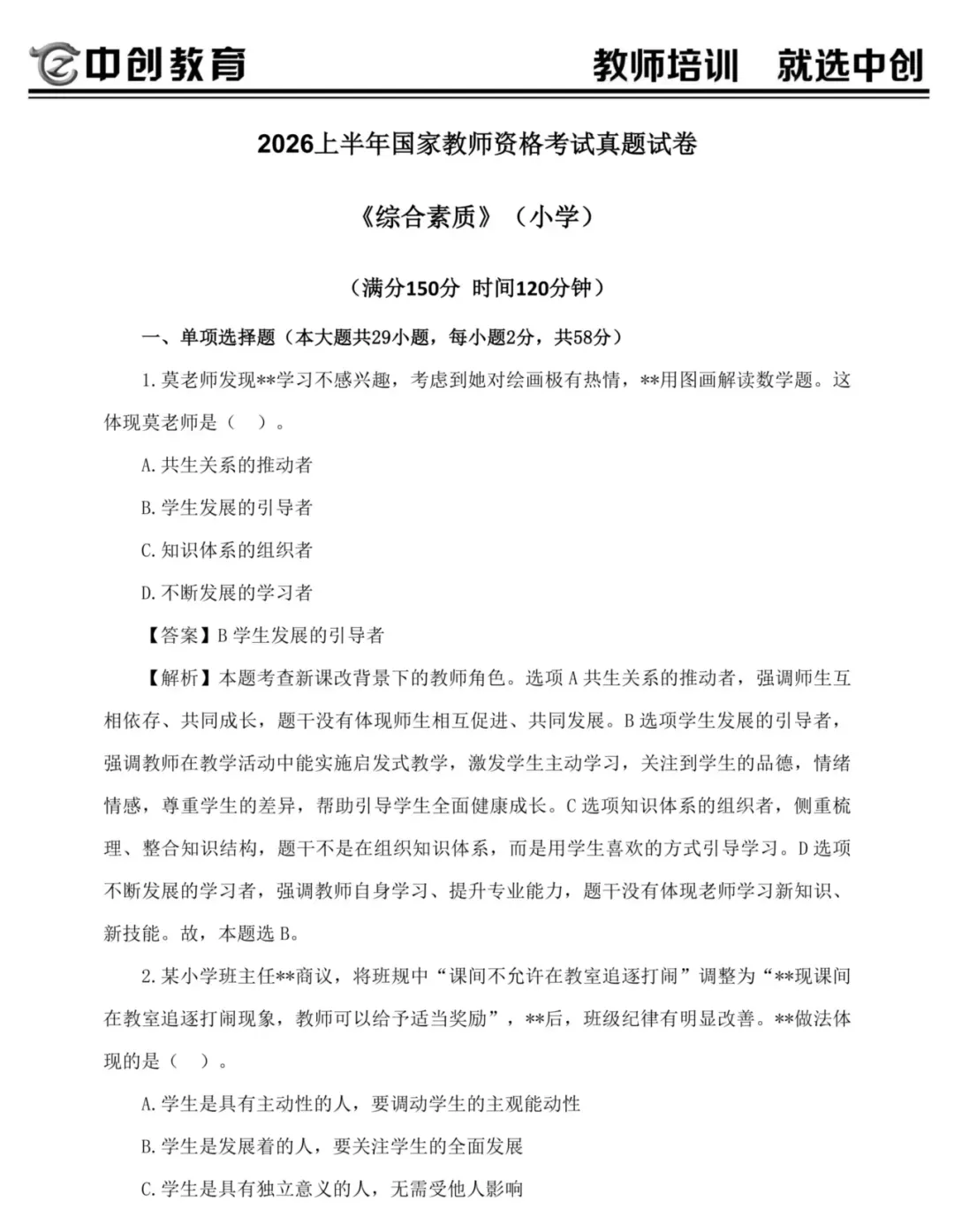 26上教资笔试真题+解析