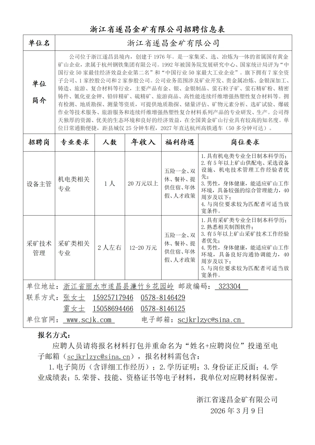 【声明】本公告来源于“浙江省遂昌金矿有限公司”,由“浙江考聊国企招聘”公众号整理编辑,仅用于学习交流目的,若涉及侵权和错误信息,请扫描上方二维码联系予以更改或删除。