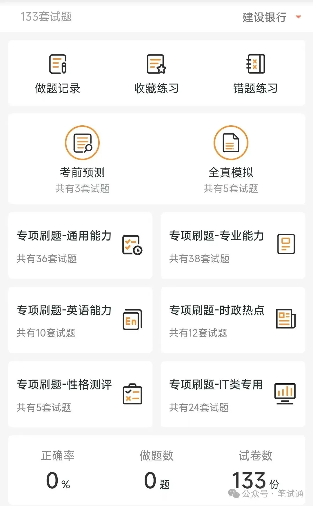 -完整真题套题:【笔试通】公众号内发消息回复“建设银行”获取-中国建设银行笔试备考学习包历年完整真题&复习讲义&机考模拟&APP刷题库&企业文化知识&时政中国建设银行笔试备考学习包历年完整真题&复习讲义&机考模拟&APP刷题库&企业文化知识&时政