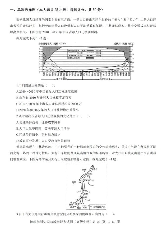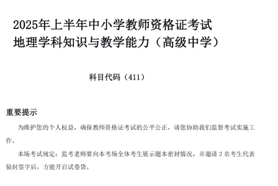 2021年-2025下半年教资笔试高中地理历年真题及答案解析