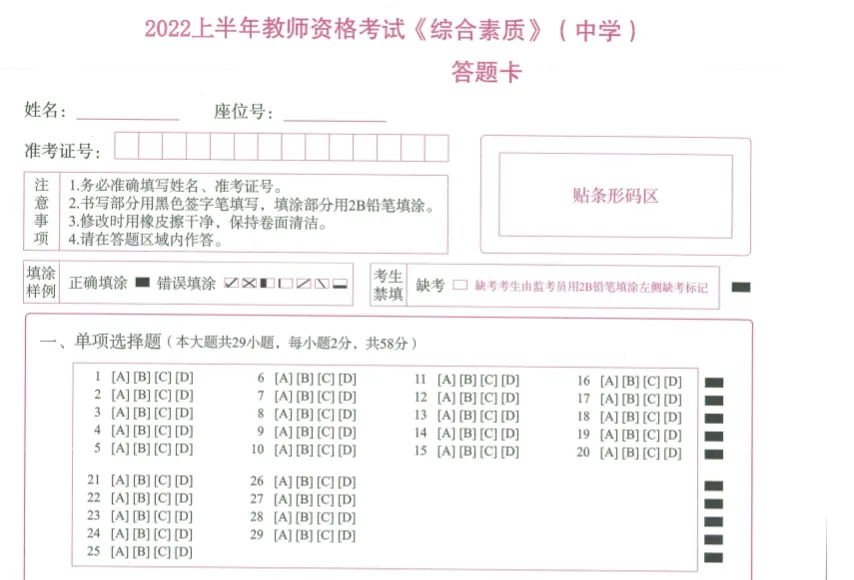 「【07】教资笔试答题卡」