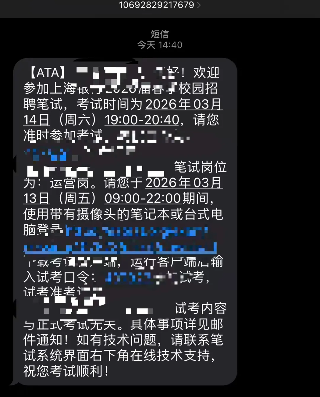 笔试时间:2026年03月14号(周六)19:00-20:40