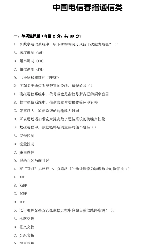 中国电信笔试通知已出!不知道考什么的小伙伴抓紧时间背题啦!本次考试总共分为行测+专业知识,题量大时间紧,一定要提前熟悉考试题型哦!