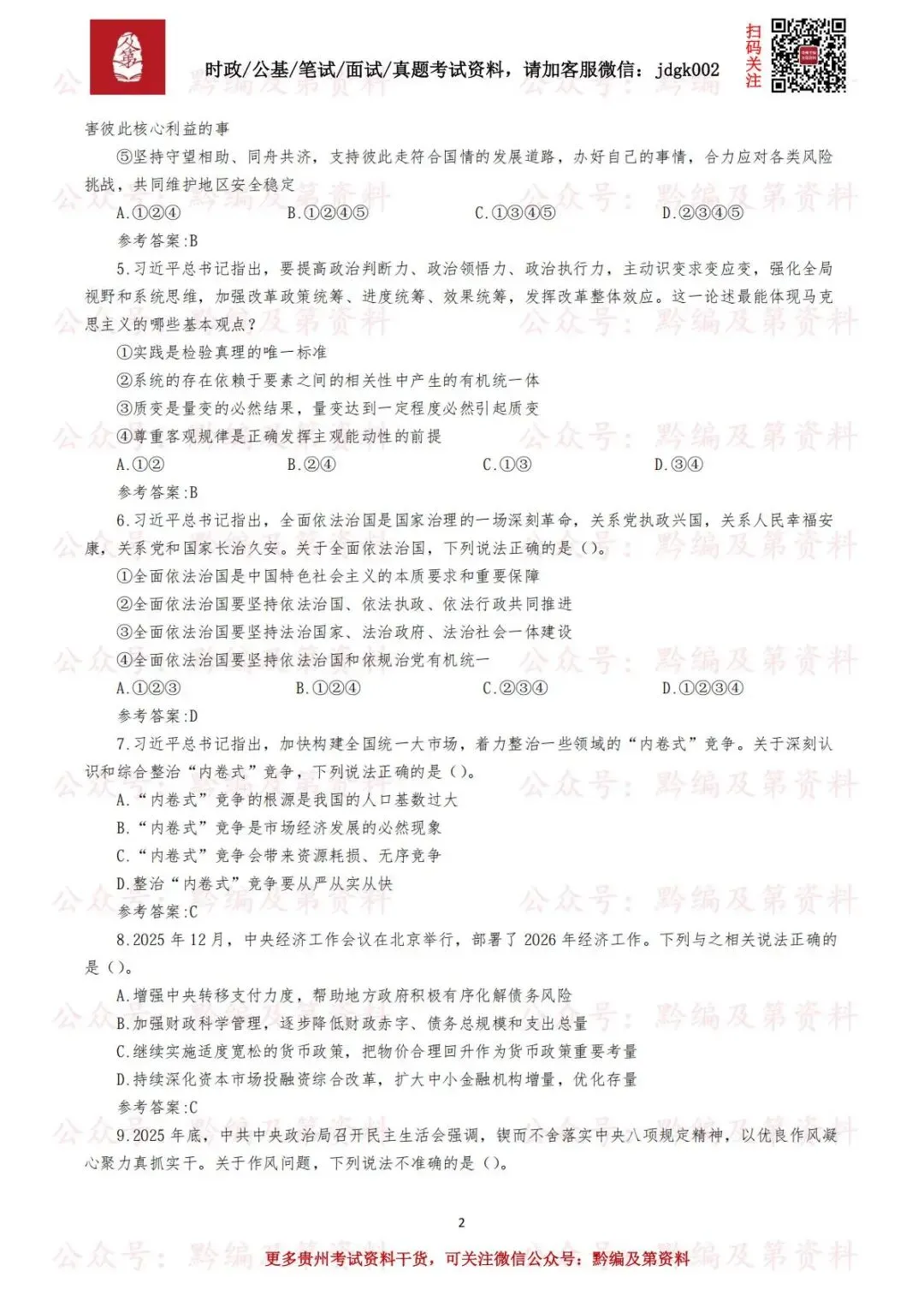 由于篇幅有限,查看完整2026年贵州省公务员考试《行测》试题及参考答案