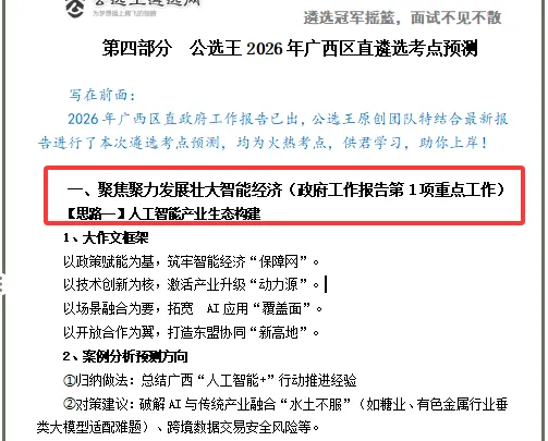 话不多说,一起来看2026年广西区市直遴选笔试考题+参考解析吧。