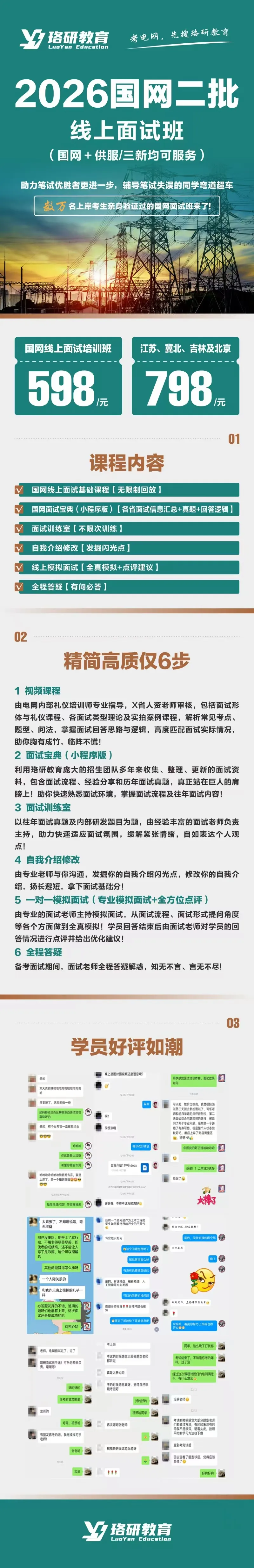 为助力同学们学习面试技巧,积累面试经验,从容应对后续的国网二批面试,珞研教育LY推出了适配国网/供服/三新招聘的面试辅导,分为线上和线下两个班型。珞研教育LY会一直陪伴同学们,祝大家如愿上岸!