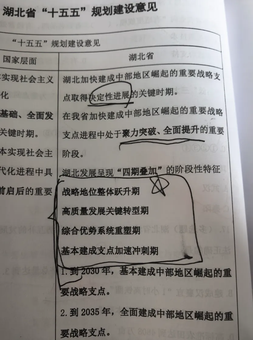 2026年,打开试卷扑面而来的虽是密密麻麻的文字、鲜活的事例与分值的新变化,但只要迅速调整状态、沉心作答,你就会发现:基础扎实,便无惧情境换新衣;考点万变,终不离其宗。每个阶段默默耕耘的学习时光都不会被辜负,那些日复一日的积累,终将铺就你稳稳上岸的坦途。1.关于“十五五”时期的湖北目标定位,请看下图,ABCD四个选项均在其列。2.下列古代文学与其体裁对应正确的是:(诗词曲赋)