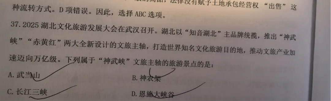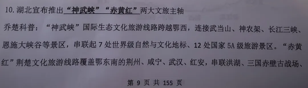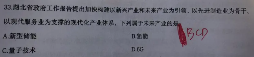 正确选项:聚力推动“41020”新兴产业和未来产业前瞻布局8.湖北两条文旅主轴,下列属于“赤黄红”文旅主轴的是:乔楚说:冲刺讲义90页、公基专项9页、模考3第37题12.下列历史事件排序正确的是?选项涉及黄麻起义;京汉铁路大罢工;武昌起义;武汉会战乔楚说:基础法政党科讲义140、142、144、201页乔楚说:基础法政党科讲义141 每日打卡学习第38天19.某村“两委”在专题学习时,村干部作了发言,其中不恰当的发言是:正确答案:我们要移风易俗,不能搞高价彩礼、人情送礼、厚养薄葬、铺张浪费、请客吃“杀猪饭”等正确选项:社区书记当选要报街道党工委批准,县委组织部备案乔楚说:法政党科77-78;模考1第42题;模考8第8题、45题24.现在大家都在使用AI,AI在大家的工作中,下列哪些行为不合适乔楚说:法政党科52页;题海多选题法律编多选第10题;判断第14题☜左右滑动查看更多