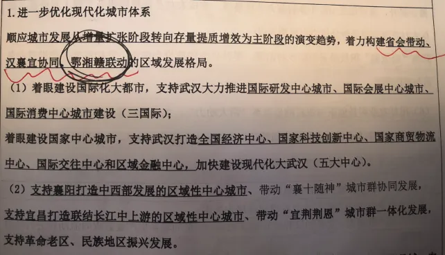 1、党中央政治观(第一段);湖北政绩观,为建成支点提供保障(第二段)