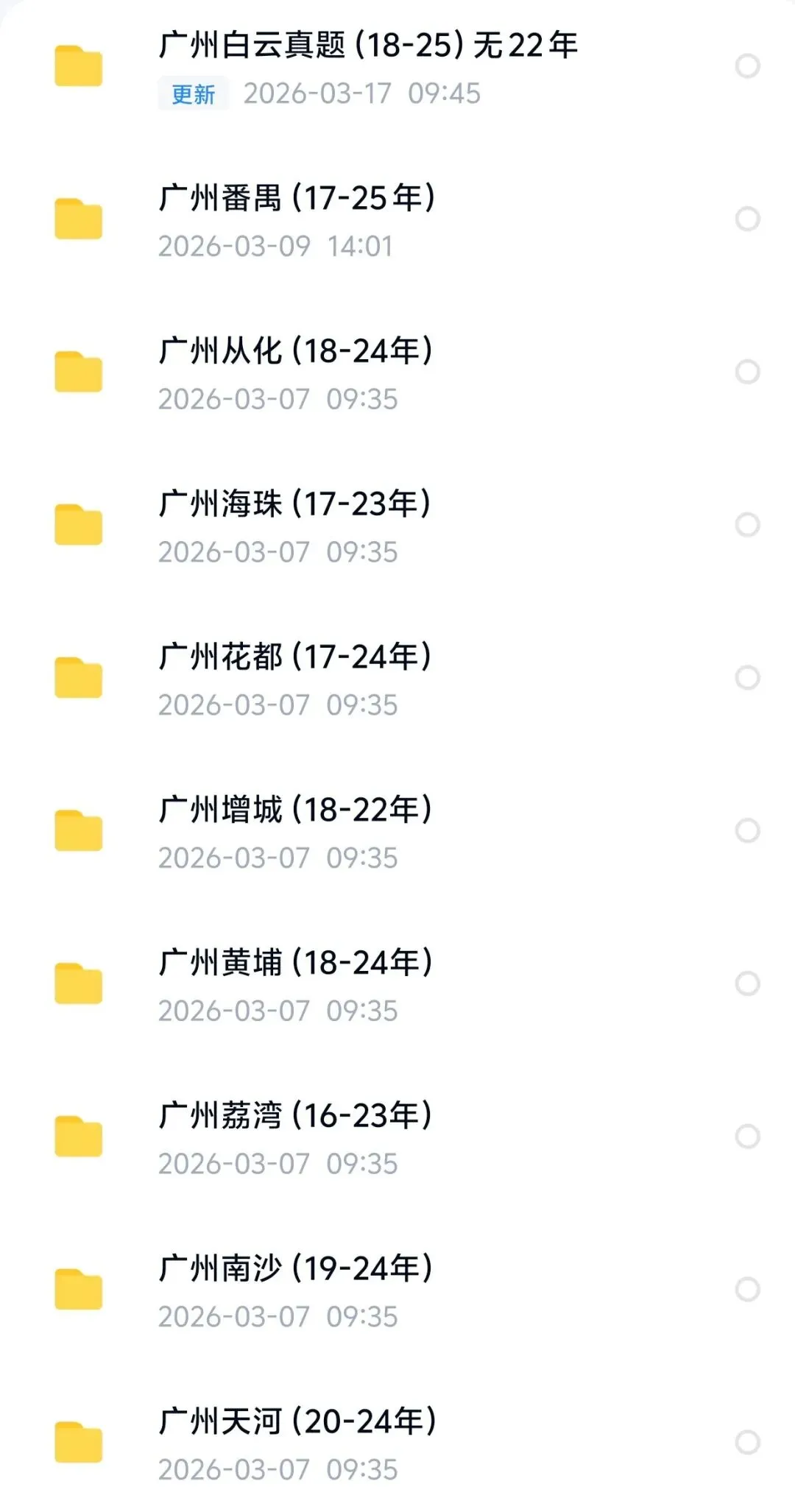 还有天河区、荔湾区、增城区、南沙、番禺区、海珠区、花都区、黄浦区、从化区笔试真题(教综真题)
