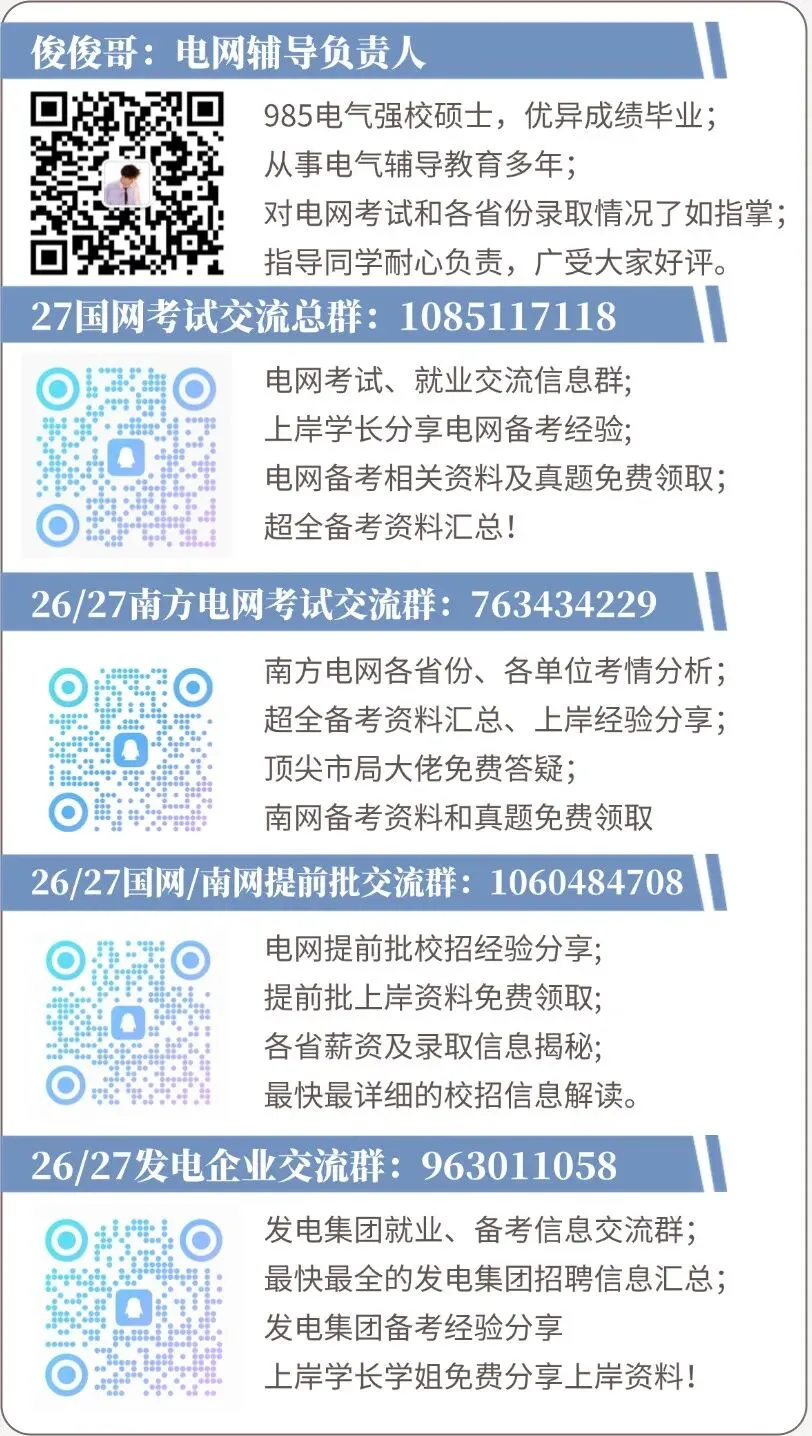 天津电网26年面试均采用半结构化面试,首先做1分钟的简短自我介绍,然后由面试官进行提问,包括个人综合能力和电工类专业问题,专业课问题比较基础,回答简洁明了即可。