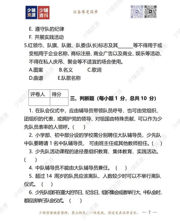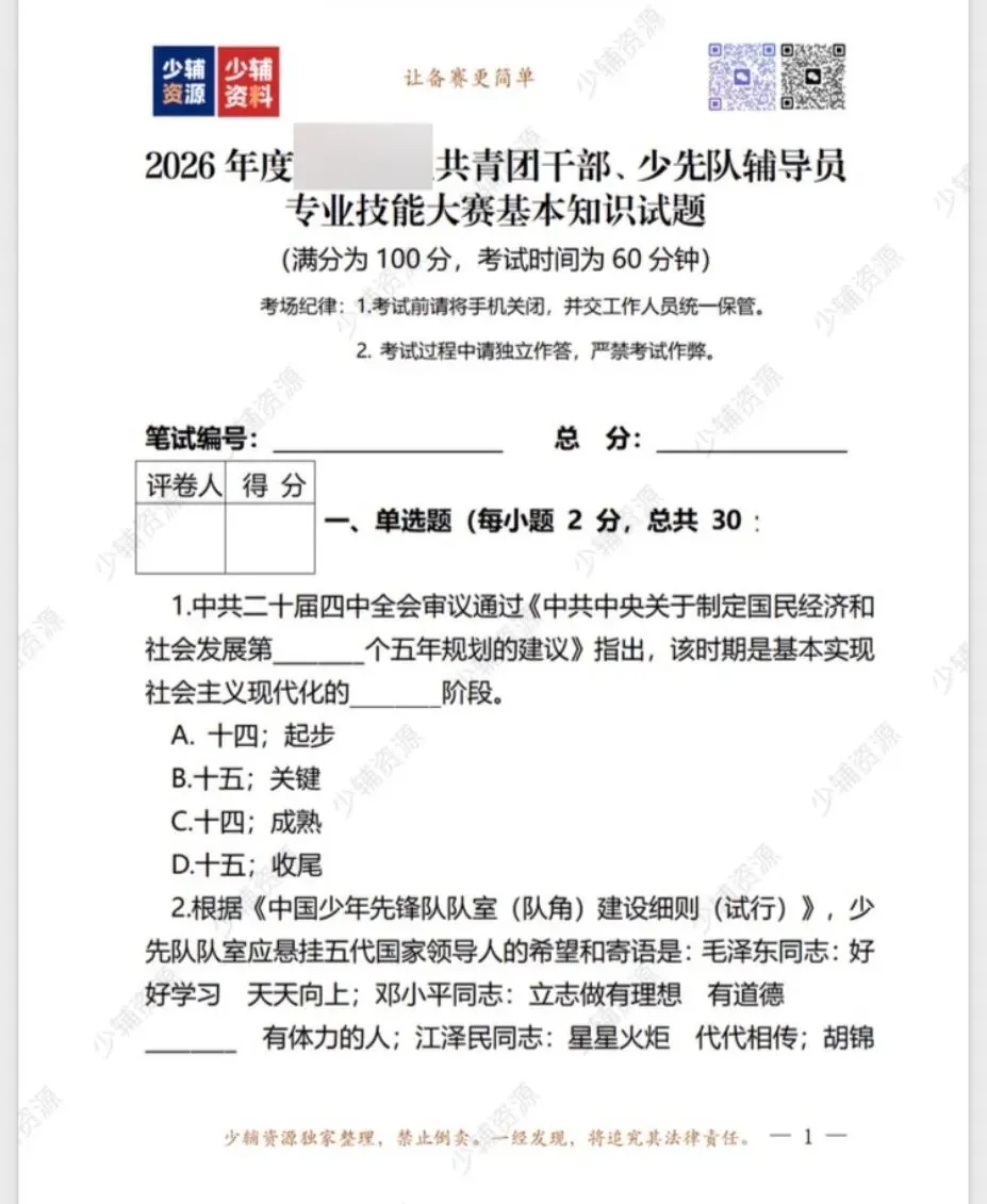 >【最新】2026年少先队辅导员我技能大赛笔试真题