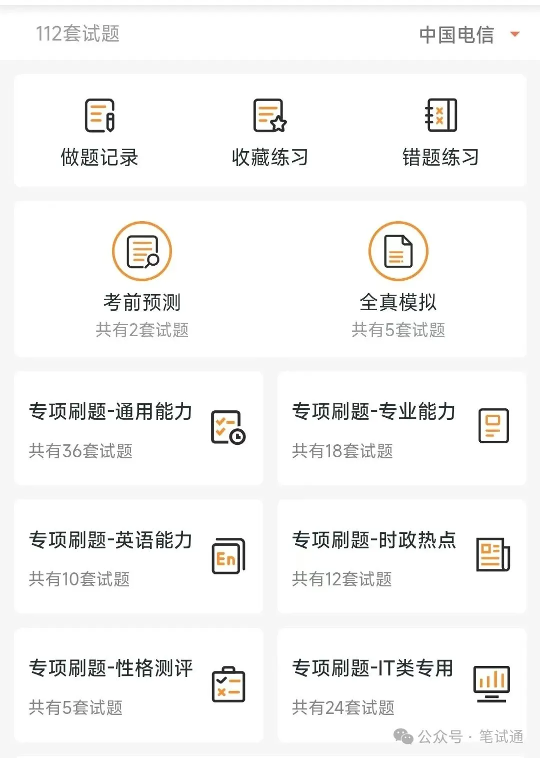 中国电信笔试备考学习包历年真题&复习讲义&机考模拟&APP刷题库&企业文化知识中国电信笔试备考学习包历年真题&复习讲义&机考模拟&APP刷题库&企业文化知识