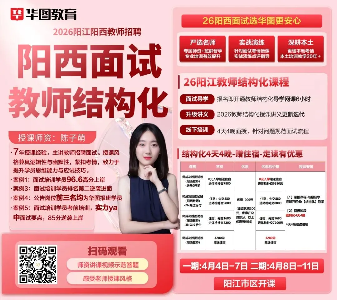 当前位置:首页>笔试真题>阳西教师笔试成绩已出!一期面试班4月4日开课!【真题+资料免费领】