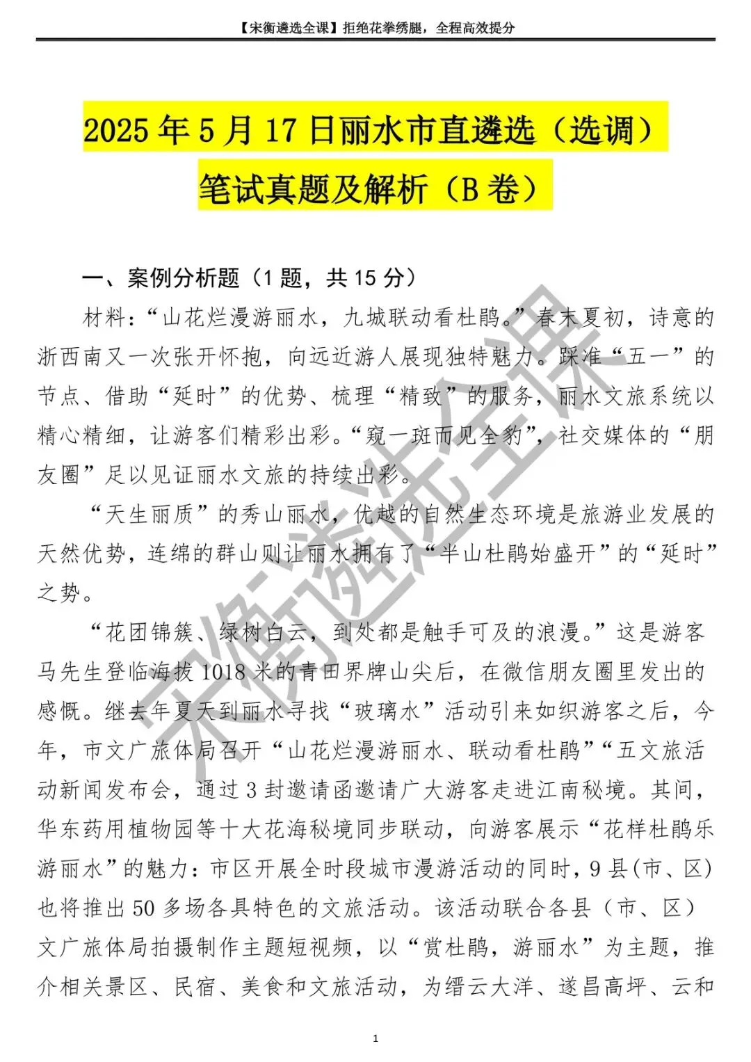 >2025年5月17日丽水市直遴选(选调)笔试真题及解析(B卷)