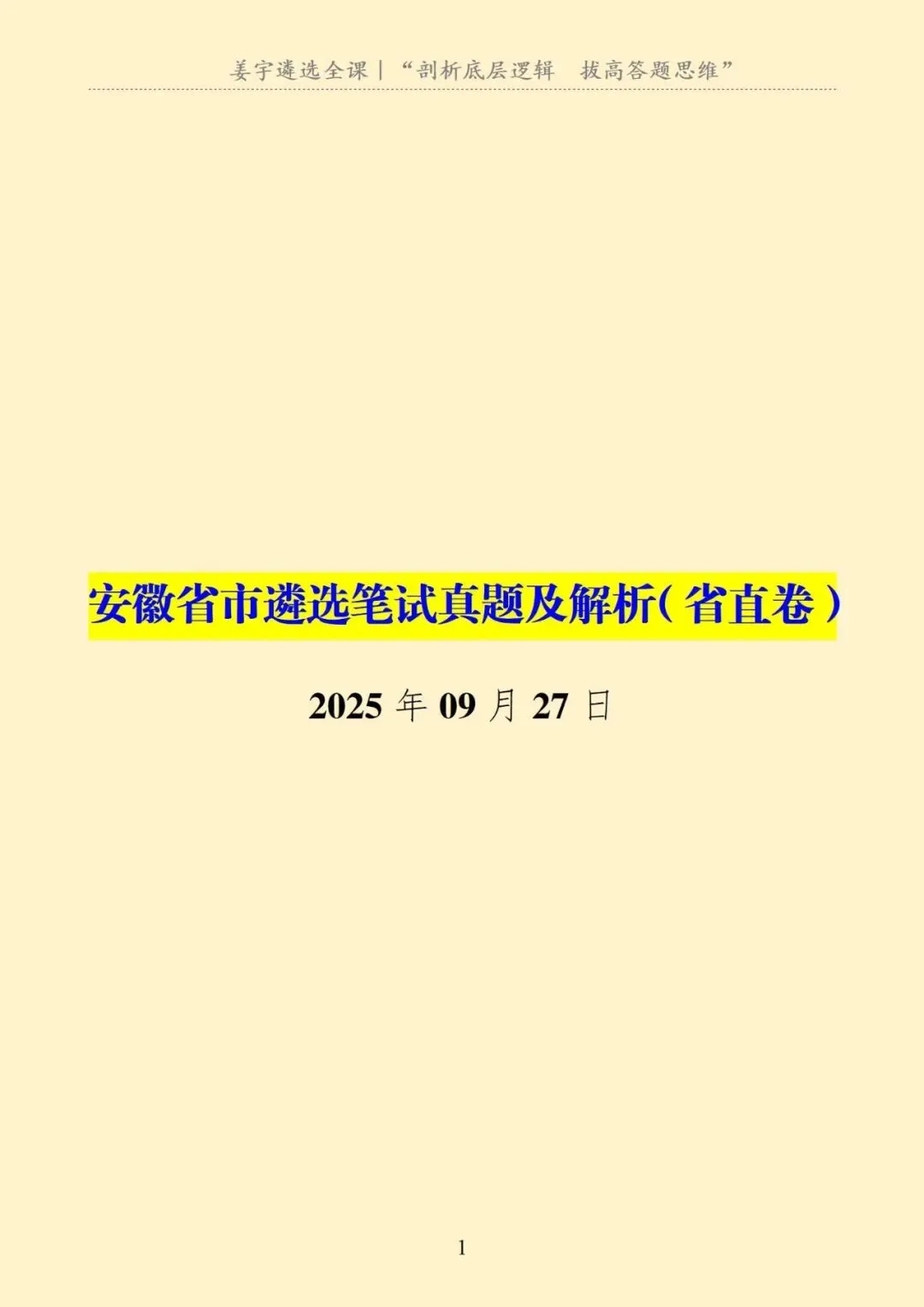 >安徽省|市遴选笔试真题及解析(省直卷)