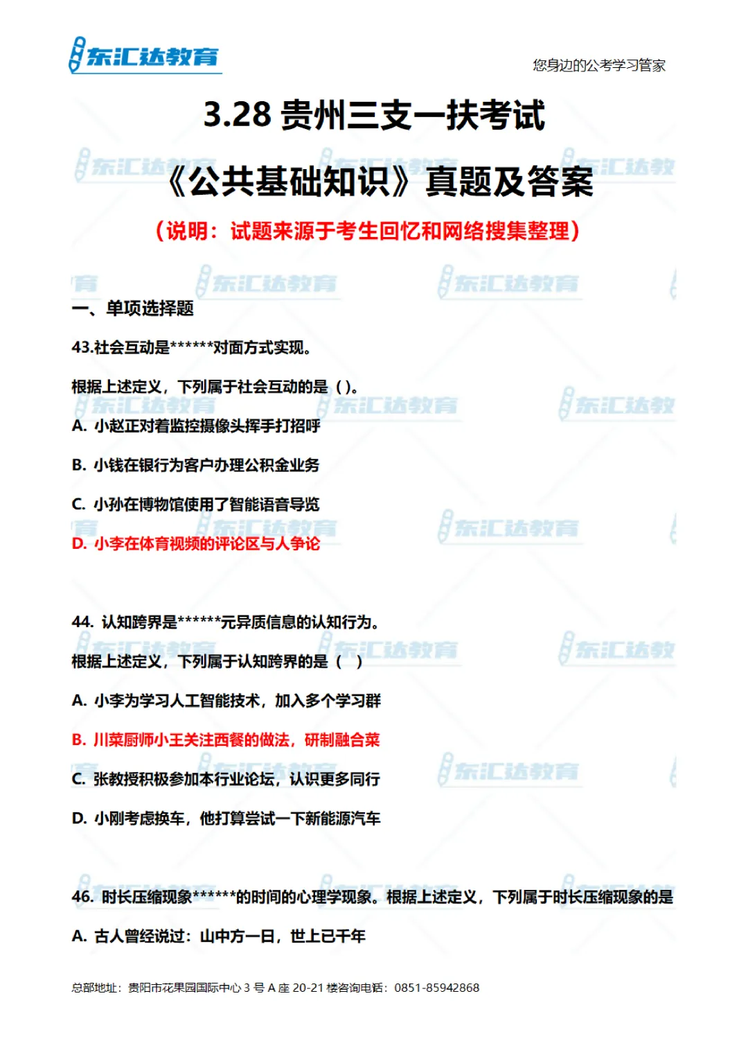 26贵州三支一扶真题及答案(考生回忆版)