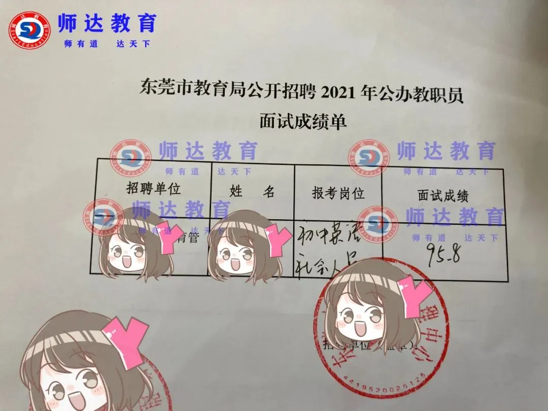 东莞教招最新喜报!面试总分最高分95.8分,无领导、试讲双第一!