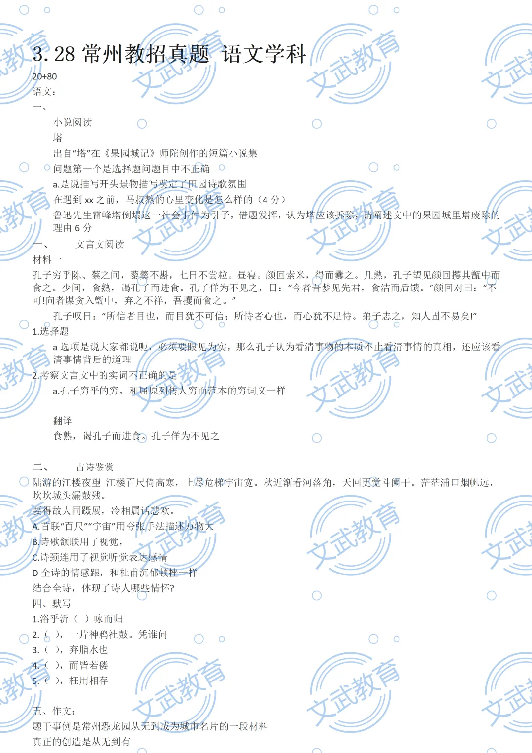 文武教育教招笔面线下班