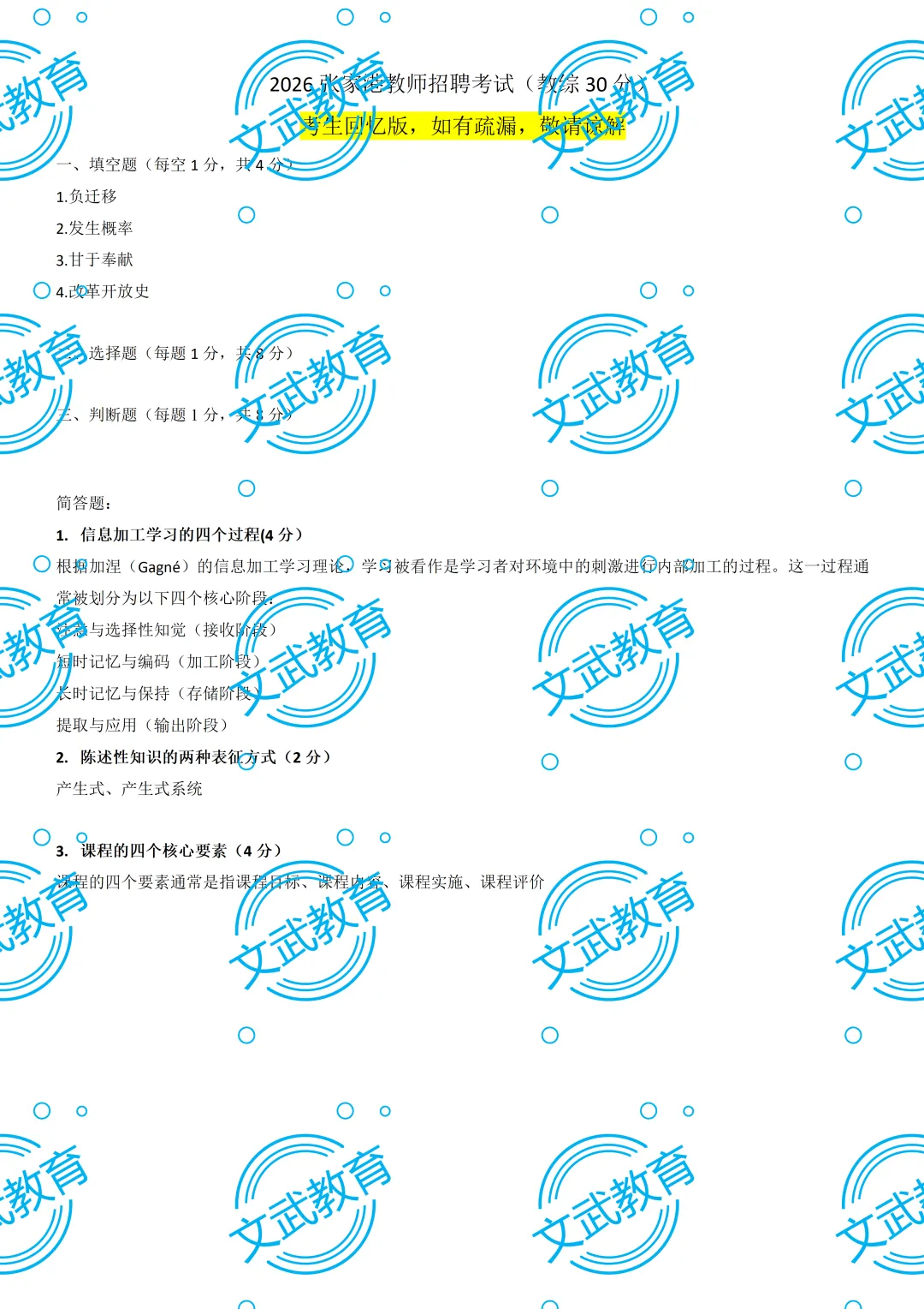 2026张家港教师招聘考试真题答案