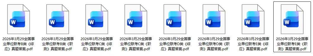 2026年328事业单位联考A类《职测》真题试卷+参考答案【甘肃、青海、宁夏、河北、陕西、山西、安徽、江西、上海、湖南、湖北、黑龙江、吉林、辽宁、重庆、贵州、云南、广西、海南】2026年328事业单位联考A类《综应》真题试卷+参考答案【甘肃、青海、宁夏、河北、陕西、山西、安徽、江西、上海、湖南、湖北、黑龙江、吉林、辽宁、重庆、贵州、云南、广西、海南】2026年328事业单位联考B类《职测》真题试卷+参考答案【甘肃、青海、宁夏、河北、陕西、山西、安徽、江西、上海、湖南、湖北、黑龙江、吉林、辽宁、重庆、贵州、云南、广西、海南】2026年328事业单位联考B类《综应》真题试卷+参考答案【甘肃、青海、宁夏、河北、陕西、山西、安徽、江西、上海、湖南、湖北、黑龙江、吉林、辽宁、重庆、贵州、云南、广西、海南】2026年328事业单位联考C类《职测》真题试卷+参考答案【甘肃、青海、宁夏、河北、陕西、山西、安徽、江西、上海、湖南、湖北、黑龙江、吉林、辽宁、重庆、贵州、云南、广西、海南】2026年328事业单位联考C类《综应》真题试卷+参考答案【甘肃、青海、宁夏、河北、陕西、山西、安徽、江西、上海、湖南、湖北、黑龙江、吉林、辽宁、重庆、贵州、云南、广西、海南】2026年328事业单位联考D类《职测》真题试卷+参考答案【甘肃、青海、宁夏、河北、陕西、山西、安徽、江西、上海、湖南、湖北、黑龙江、吉林、辽宁、重庆、贵州、云南、广西、海南】2026年328事业单位联考D类《综应》真题试卷+参考答案【甘肃、青海、宁夏、河北、陕西、山西、安徽、江西、上海、湖南、湖北、黑龙江、吉林、辽宁、重庆、贵州、云南、广西、海南】2026年328事业单位联考E类《职测》真题试卷+参考答案【甘肃、青海、宁夏、河北、陕西、山西、安徽、江西、上海、湖南、湖北、黑龙江、吉林、辽宁、重庆、贵州、云南、广西、海南】2026年328事业单位联考E类《综应》真题试卷+参考答案【甘肃、青海、宁夏、河北、陕西、山西、安徽、江西、上海、湖南、湖北、黑龙江、吉林、辽宁、重庆、贵州、云南、广西、海南】部分截图: