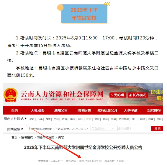 云师大附属世纪金源学校招聘事业编制教师笔试考试内容