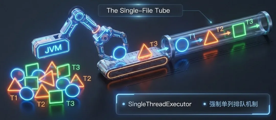 我们只需要按 T1、T2、T3 的顺序,把任务提交到这个线程池里,线程池会自动帮我们保证执行顺序。