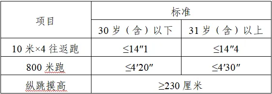 测评结果分为合格和不合格。一般体能测评三项成绩均达标的方为合格,其中具有研究生学历或副高以上职称的,体能测评三个项目中有任两项达标的,即视为合格。