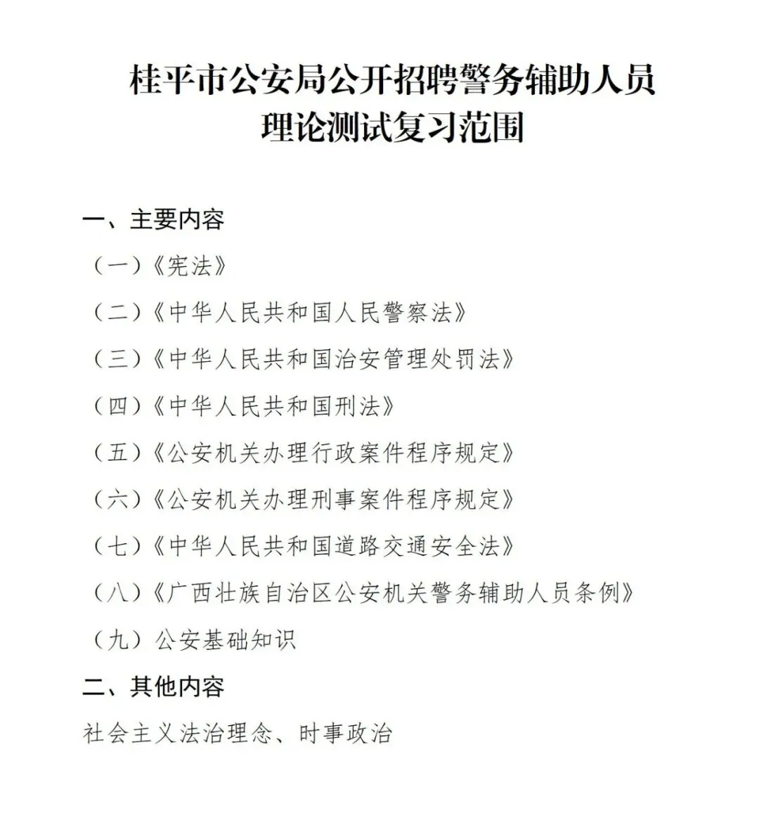 3.桂平市公安局公开招聘警务辅助人员理论测试复习范围